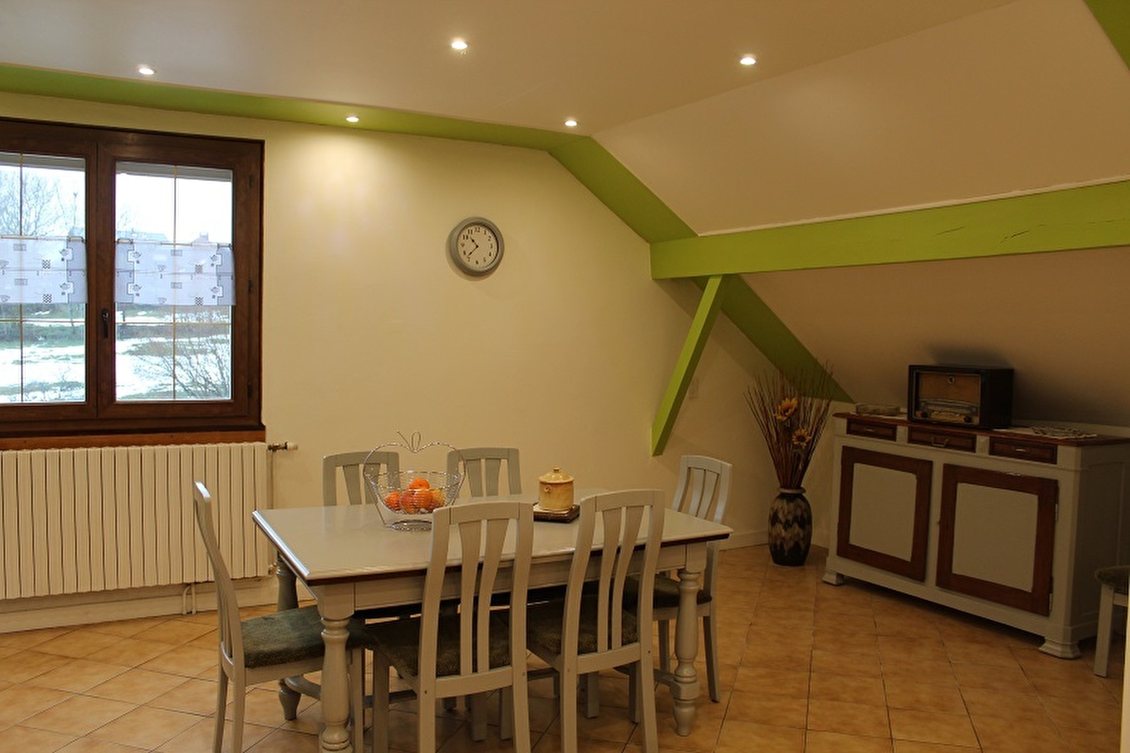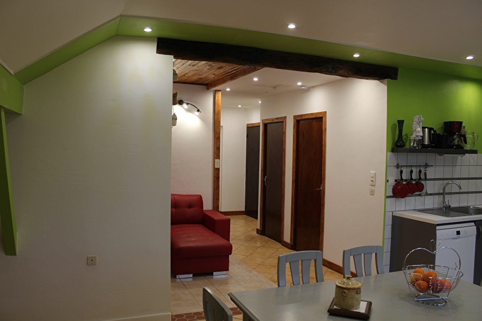 Diese Wohnung im Obergeschoss des Hauses der Eigentümer mit separatem Eingang ist ideal gelegen für Langläufer und Wanderer. Sie besteht aus einer zum Wohnzimmer hin offenen Küche, einer Sitzecke, 2 Schlafzimmern mit je einem Doppelbett, einem Schlafzimmer mit einem Doppelbett (160*200), einem Badezimmer und einem separaten WC. Angrenzendes Grundstück, Terrassenecke mit Gartenmöbeln und Grill. Gemeinschaftskessel für Pelets.