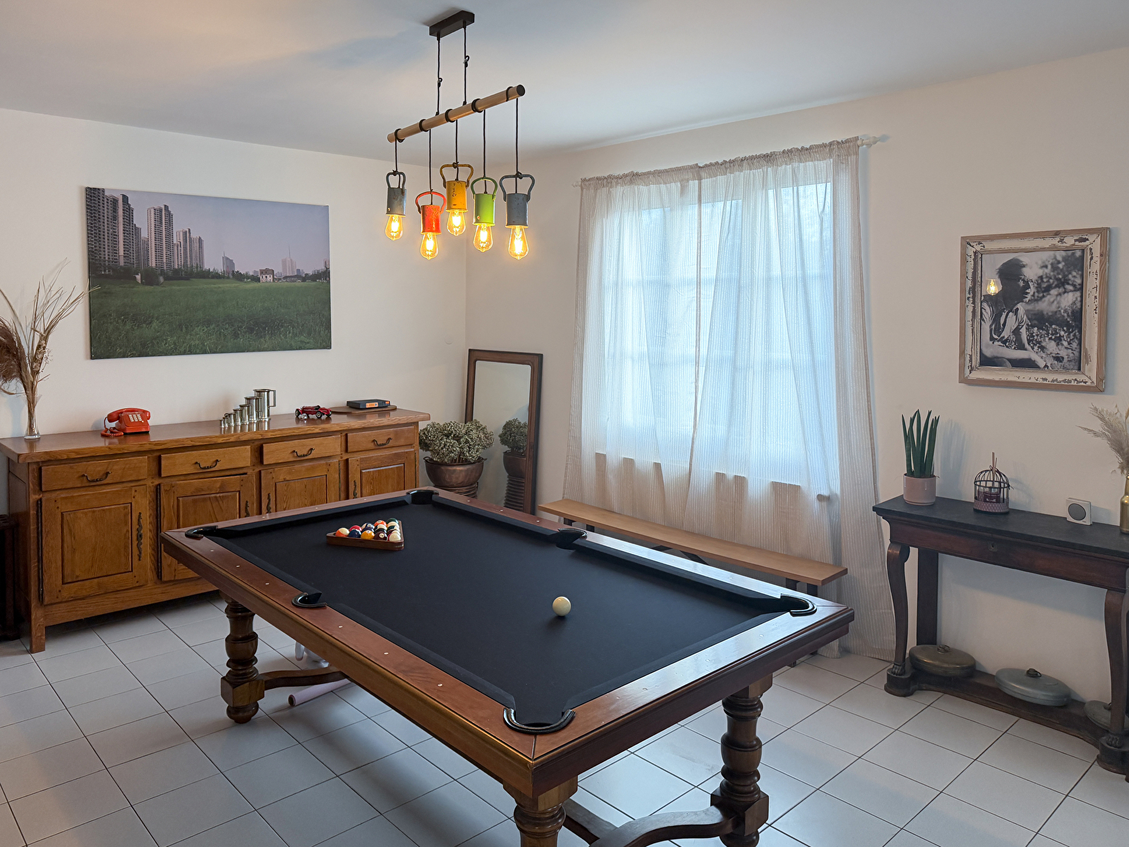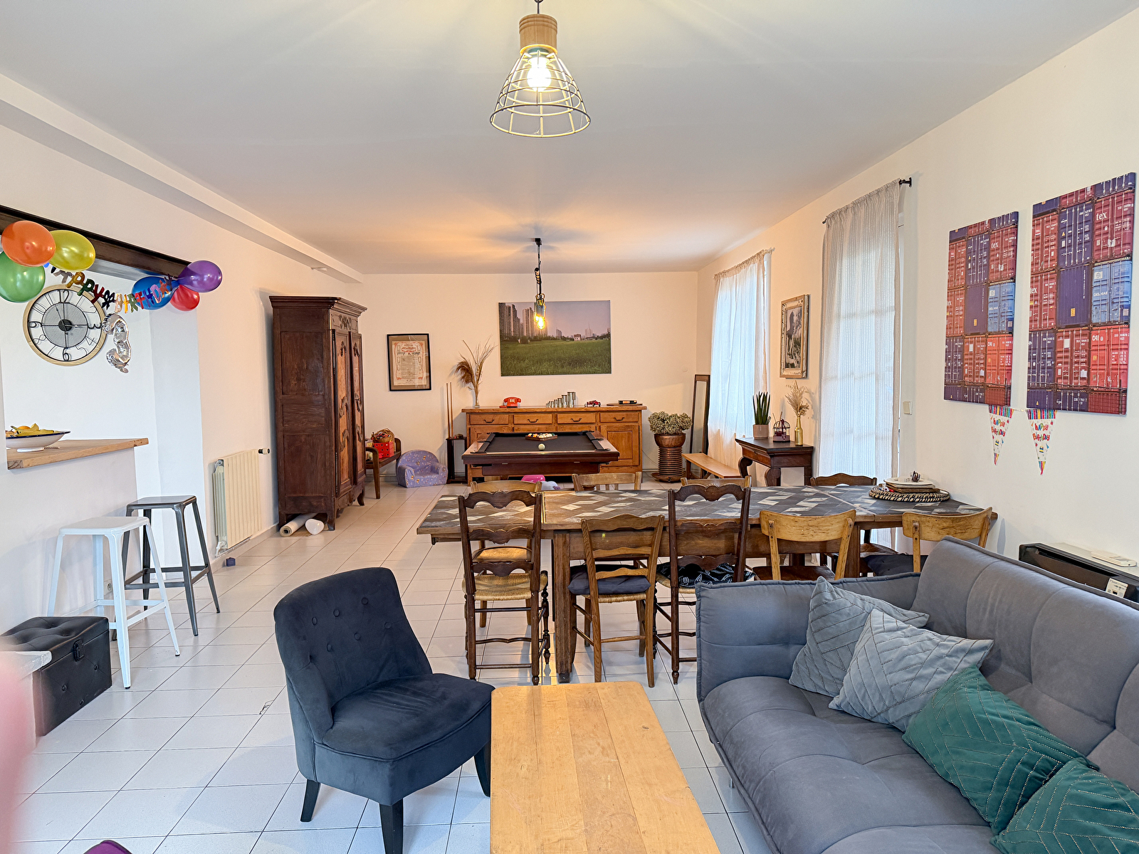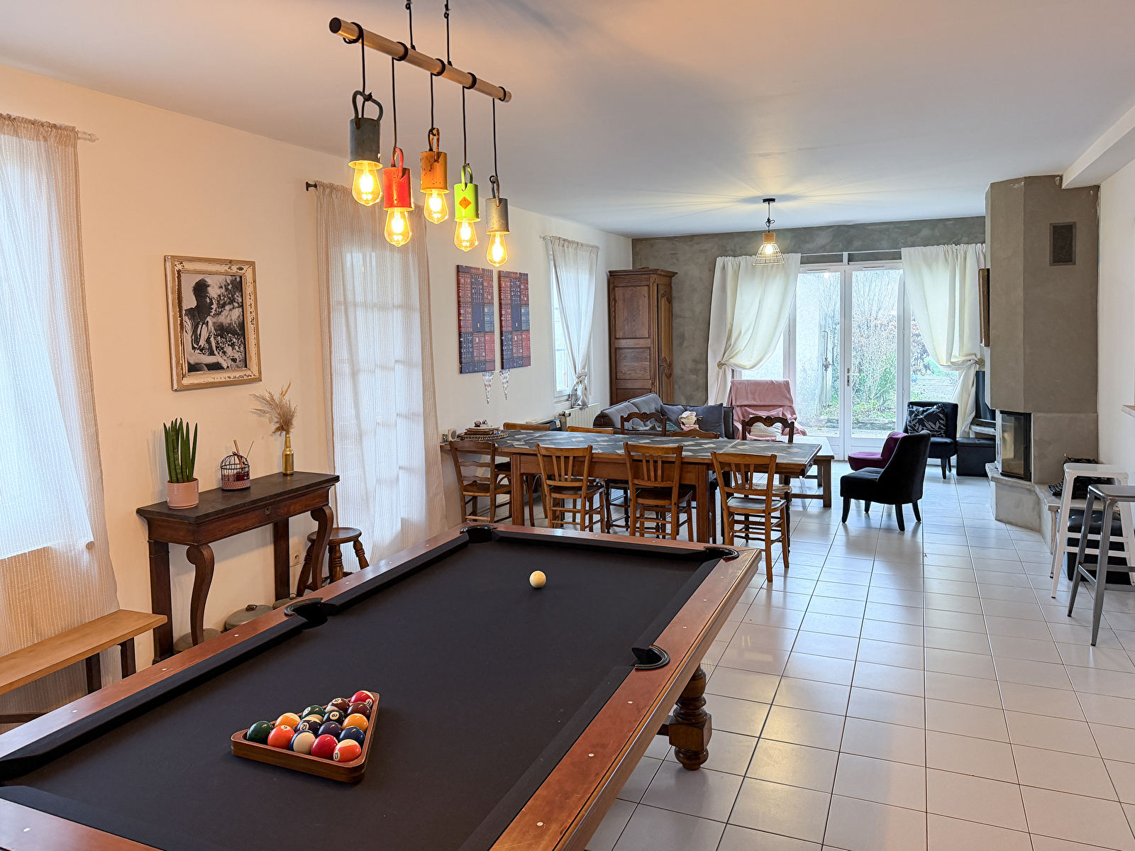 Mit 5 Schlafzimmern und 2 Badezimmern findet jeder leicht seinen Platz. Der große Wohnraum, das Herzstück des Hauses, vereint Kamin, gesellige Mahlzeiten und Billard.