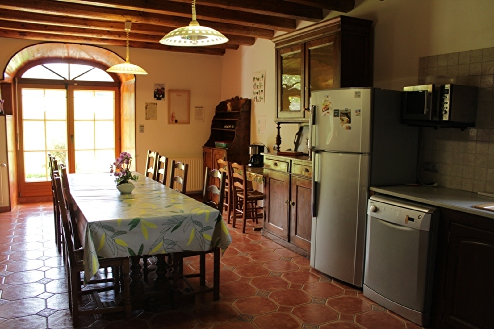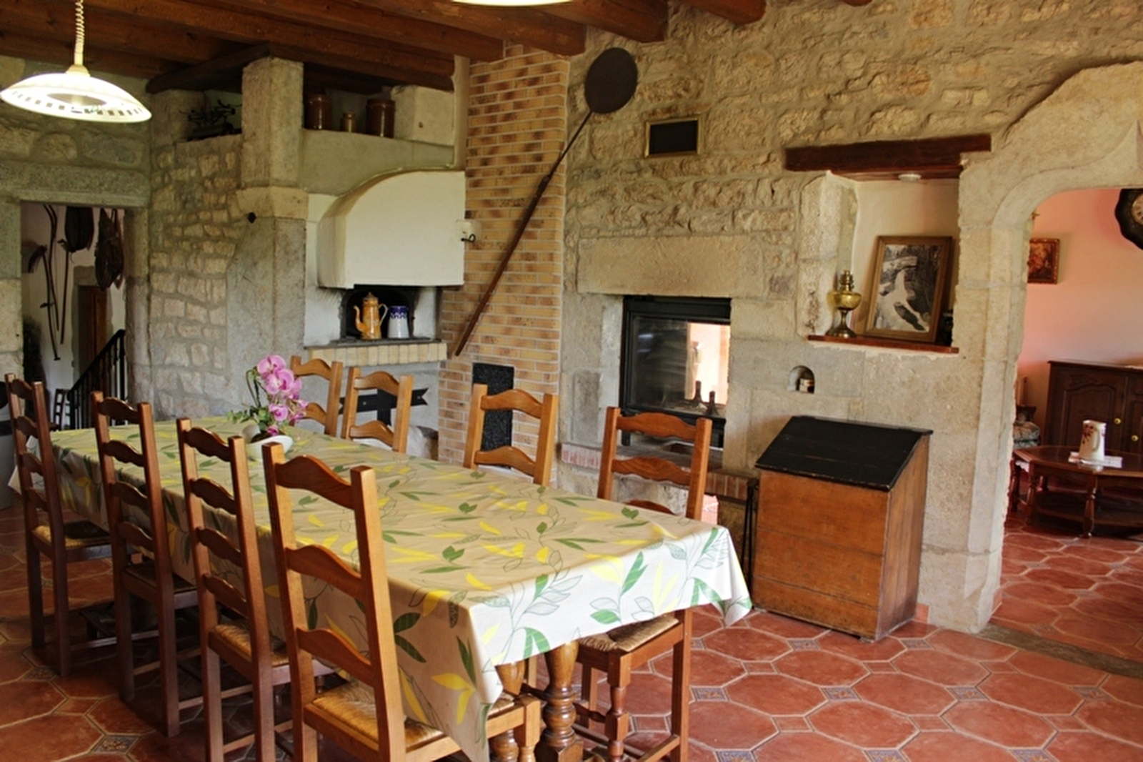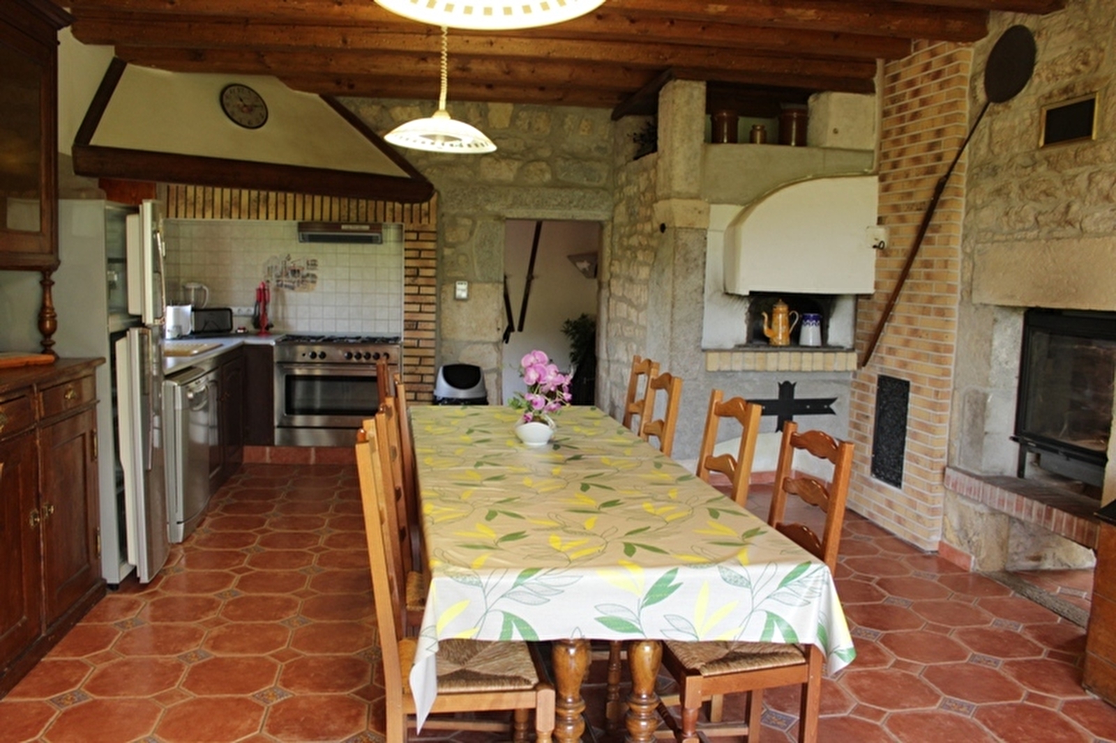 Unabhängiges Haus mit Charakter, in dem Holzbalken und Naturstein dominieren, das vom Eigentümer vollständig restauriert wurde. Erdgeschoss mit Küche (Kühlschrank mit Gefrierfach und Mikrowelle), doppelseitigem Kamin (sichtbare Feuerstelle in der Küche und im Wohnzimmer), Wohnzimmer, Esszimmer, Badezimmer, WC. Zwei Terrassen, Grill, Gartenmöbel. Obergeschoss: 4 Schlafzimmer mit jeweils 1 Doppelbett + ein eigenes Badezimmer mit WC + 1 kleines Schlafzimmer mit 2 Pl. (6m²), In einem Gewölbekeller Spielzimmer mit Billardtisch und Tischfußball. Garage und überdachter Unterstand, Zentralheizung. Spielfeld für Petanque. Kostenlose Internetverbindung. Wochenende außerhalb der Schulferien zum Preis von 400 Euro möglich. (Aufnahme eines einzigen Hundes kostenlos mit einer Kaution von 50 €).