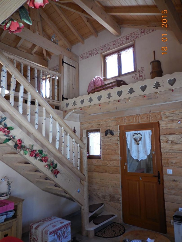 Unabhängiges Ferienhaus für 2 bis 6 Personen, das mit natürlichen Materialien eingerichtet wurde, die eine hohe Qualität der Raumluft garantieren. Erdgeschoss: Eingangshalle, Wohnraum mit Wohnzimmer, Esszimmer, Kochecke und Speisekammer. Schlafzimmer 1: 1 Doppelbett (160 cm), Schlafzimmer 2: 2 Einzelbetten, Badezimmer, WC. Obergeschoss: Mezzanin mit Sitzecke, DVD-Player, angrenzendes Grundstück, freier Blick. 2 Terrassen (eine davon überdacht) mit Gartenmöbeln und Grill. Überdachung für das Auto. Bettwäsche und Handtücher werden kostenlos zur Verfügung gestellt. Betten bei der Ankunft gemacht. Vermietung in der Mitte der Woche möglich.