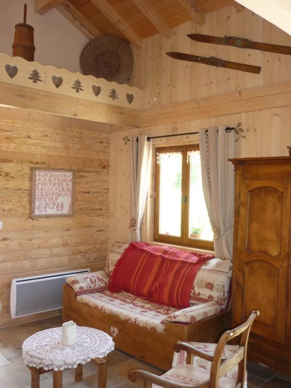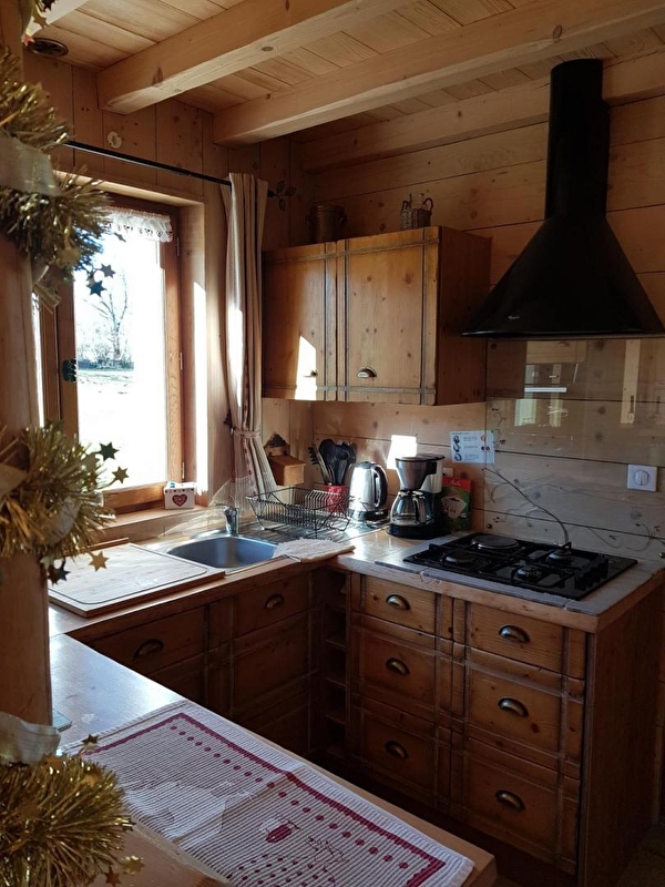 Unabhängiges Ferienhaus für 2 bis 6 Personen, das mit natürlichen Materialien eingerichtet wurde, die eine hohe Qualität der Raumluft garantieren. Erdgeschoss: Eingangshalle, Wohnraum mit Wohnzimmer, Esszimmer, Kochecke und Speisekammer. Schlafzimmer 1: 1 Doppelbett (160 cm), Schlafzimmer 2: 2 Einzelbetten, Badezimmer, WC. Obergeschoss: Mezzanin mit Sitzecke, DVD-Player, angrenzendes Grundstück, freier Blick. 2 Terrassen (eine davon überdacht) mit Gartenmöbeln und Grill. Überdachung für das Auto. Bettwäsche und Handtücher werden kostenlos zur Verfügung gestellt. Betten bei der Ankunft gemacht. Vermietung in der Mitte der Woche möglich.