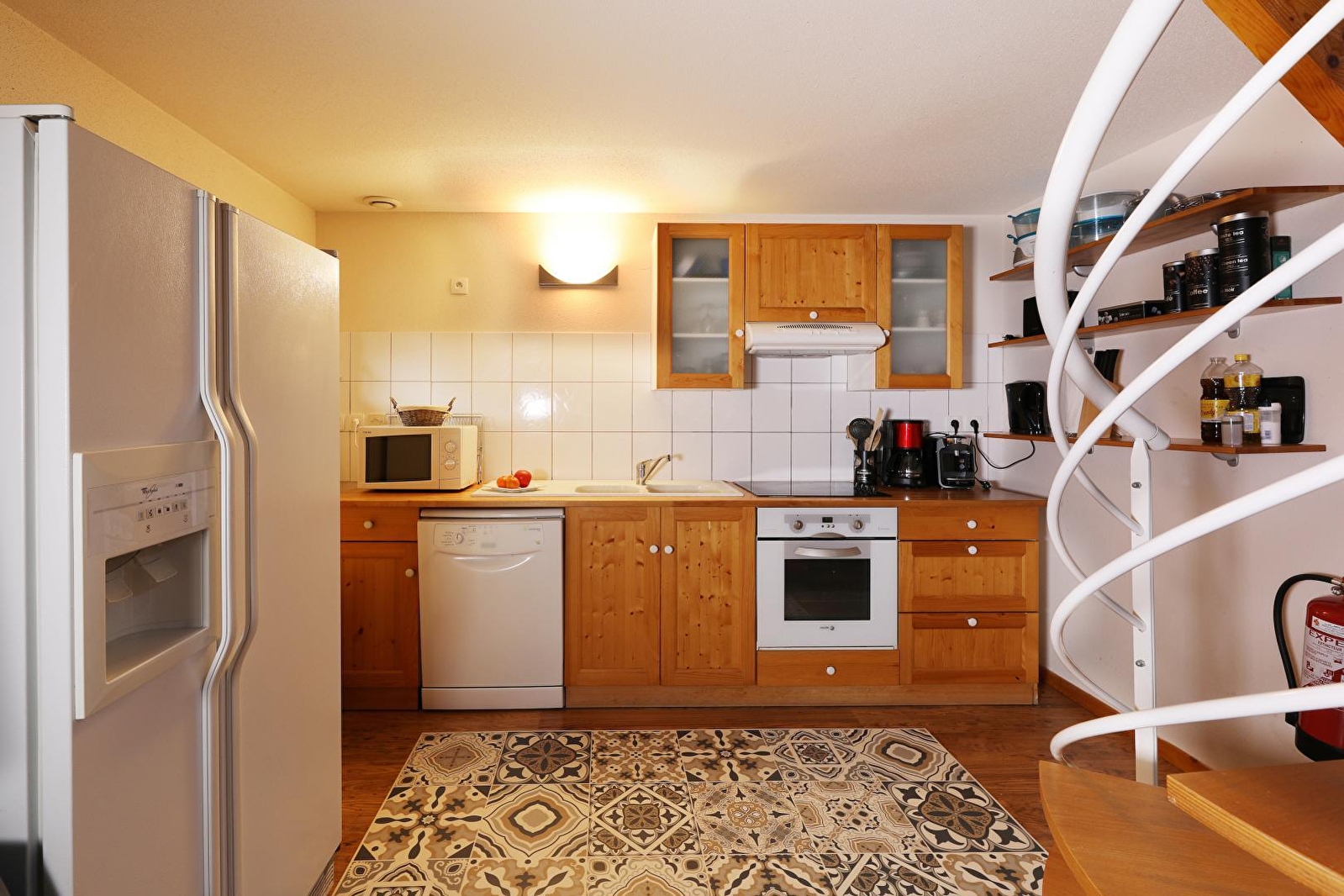- Offene Einbauküche (traditioneller Ofen, Mikrowelle, Kühl-/Gefrierschrank,...),