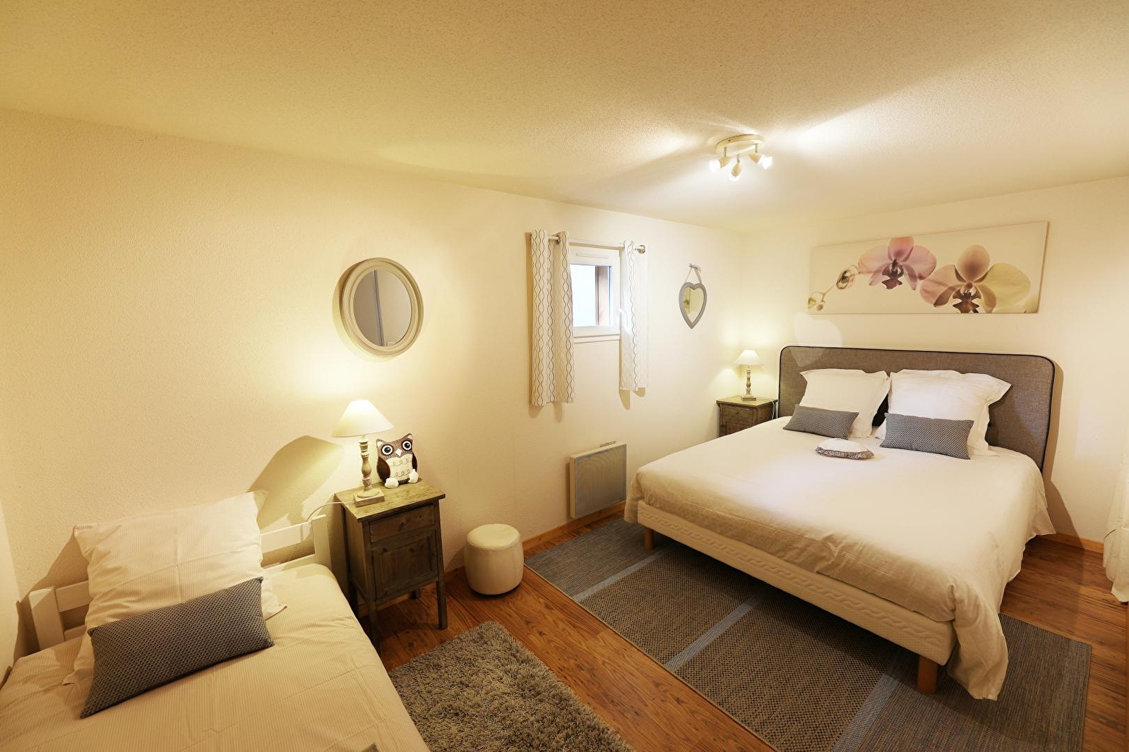 - Zimmer Nr. 1 im Erdgeschoss: 3 Einzelbetten + 1 Ausziehbett.