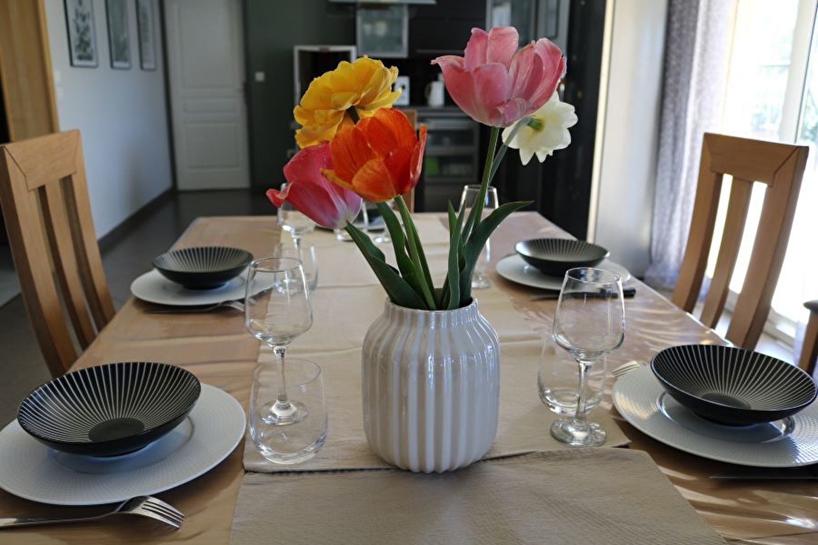 Dieses geräumige Haus in ruhiger Lage am Ende einer Sackgasse ist perfekt, um sich mit der Familie oder Freunden zu treffen. Es besteht im Erdgeschoss aus einem großen Wohnraum mit voll ausgestatteter Küche, Esszimmer, Wohnzimmer mit TV (Kanal +, DVD-Player mit zahlreichen DVDs zur Verfügung), einem Schlafzimmer mit einem 140 cm breiten Bett, einem Badezimmer mit Duschkabine und einer separaten Toilette. Im Obergeschoss befinden sich eine Sitzecke im Zwischengeschoss mit TV, ein Schlafzimmer mit 2 Einzelbetten und 2 weitere Schlafzimmer mit je einem 160 cm breiten Bett, ein Badezimmer mit Badewanne und WC. Im Außenbereich können Sie eine 50 m2 große Terrasse mit einer bioklimatischen Pergola, Gartenmöbeln und Plancha sowie ein großes Grundstück mit Kinderspielgeräten (kleines Häuschen und Schaukel) nutzen. Eine Garage steht Ihnen ebenfalls zur Verfügung. Dank der idealen Lage können Sie die Städte Poligny und Arbois, die jeweils für den Comté-Käse und den Wein bekannt sind, die Höhle von Moidons entdecken oder im See von Chalain baden. Hinweis: In 800 m Entfernung finden Sie einen Supermarkt und eine Käserei, in der Sie den berühmten Comté probieren können.