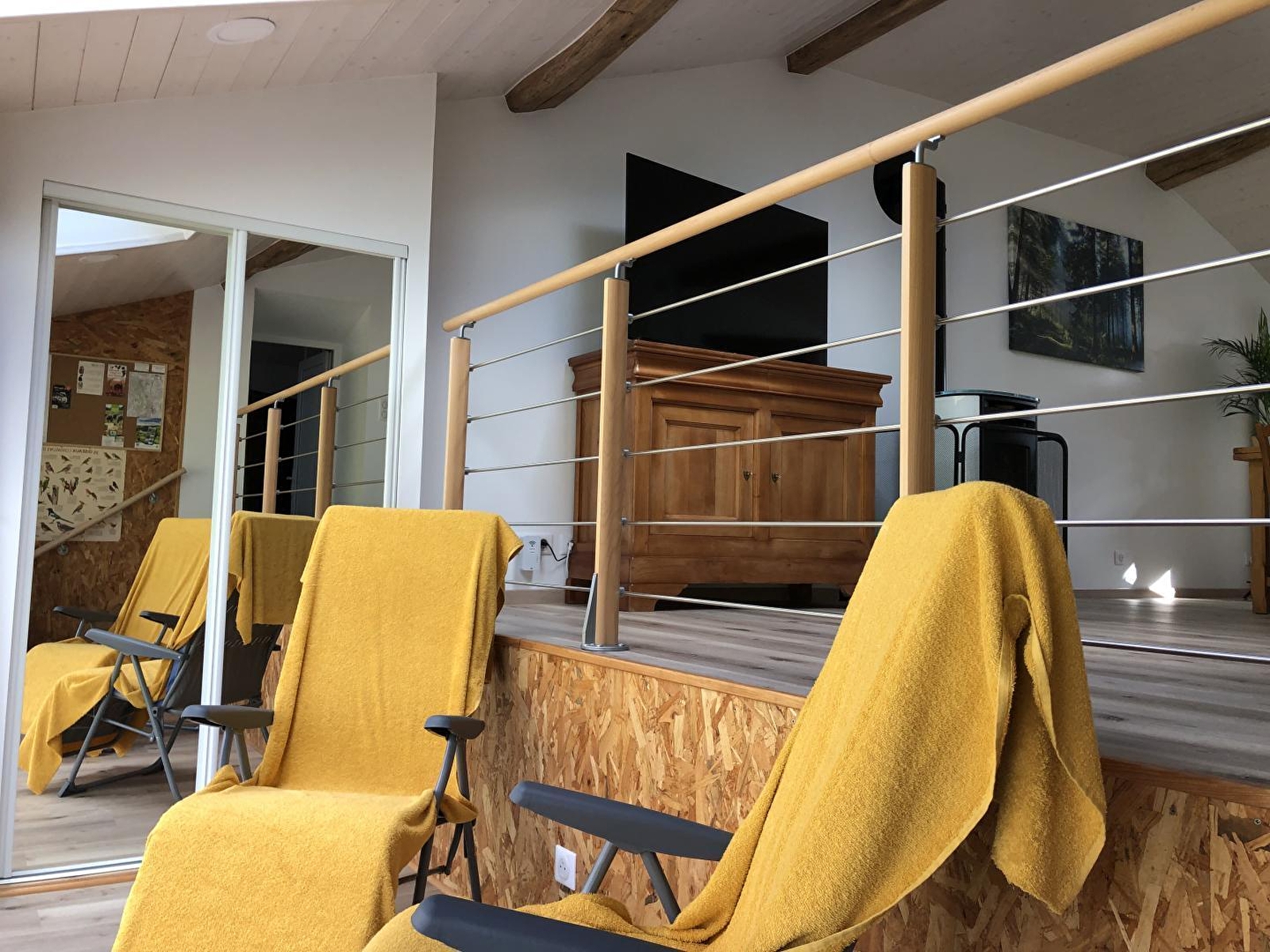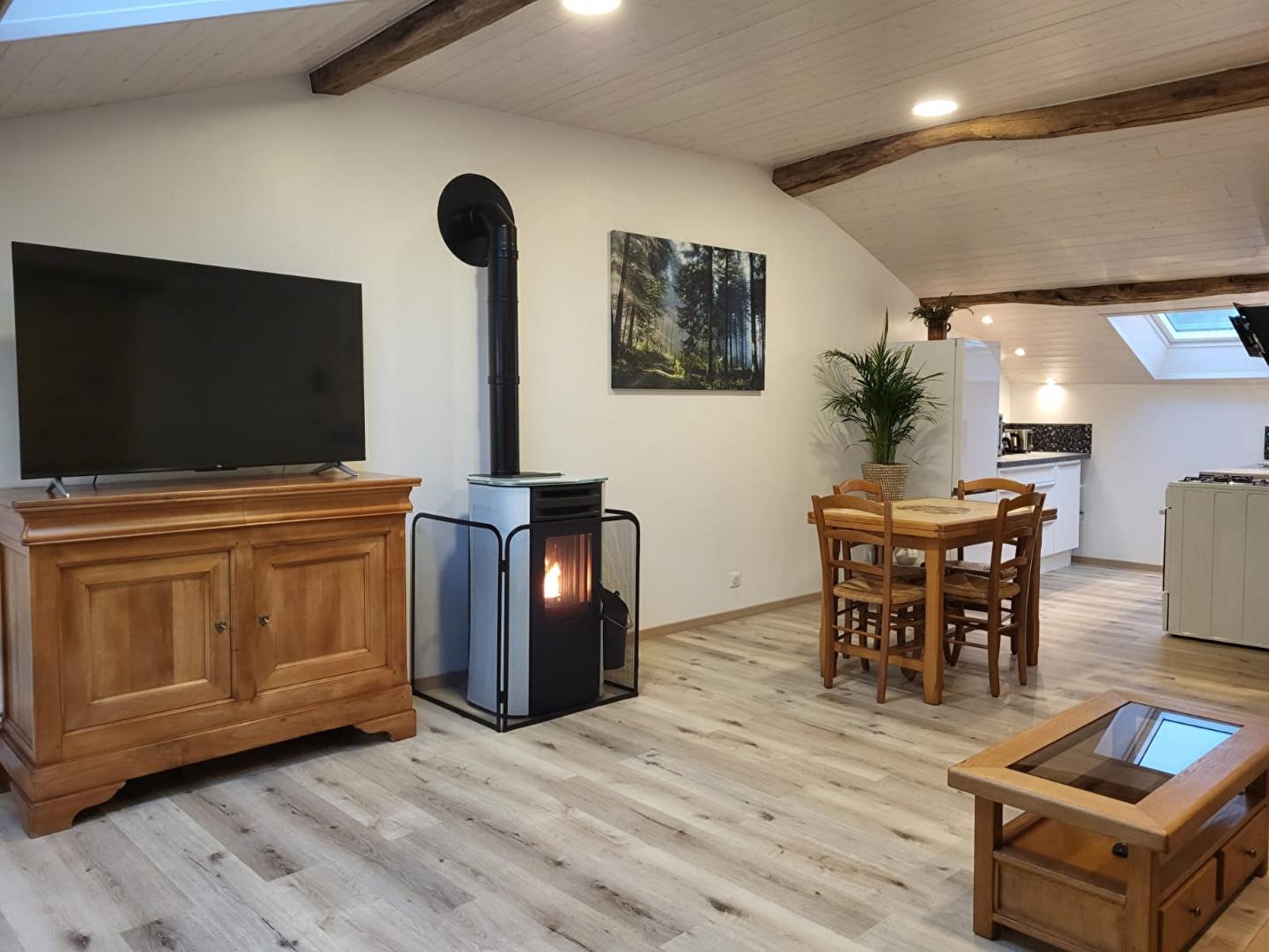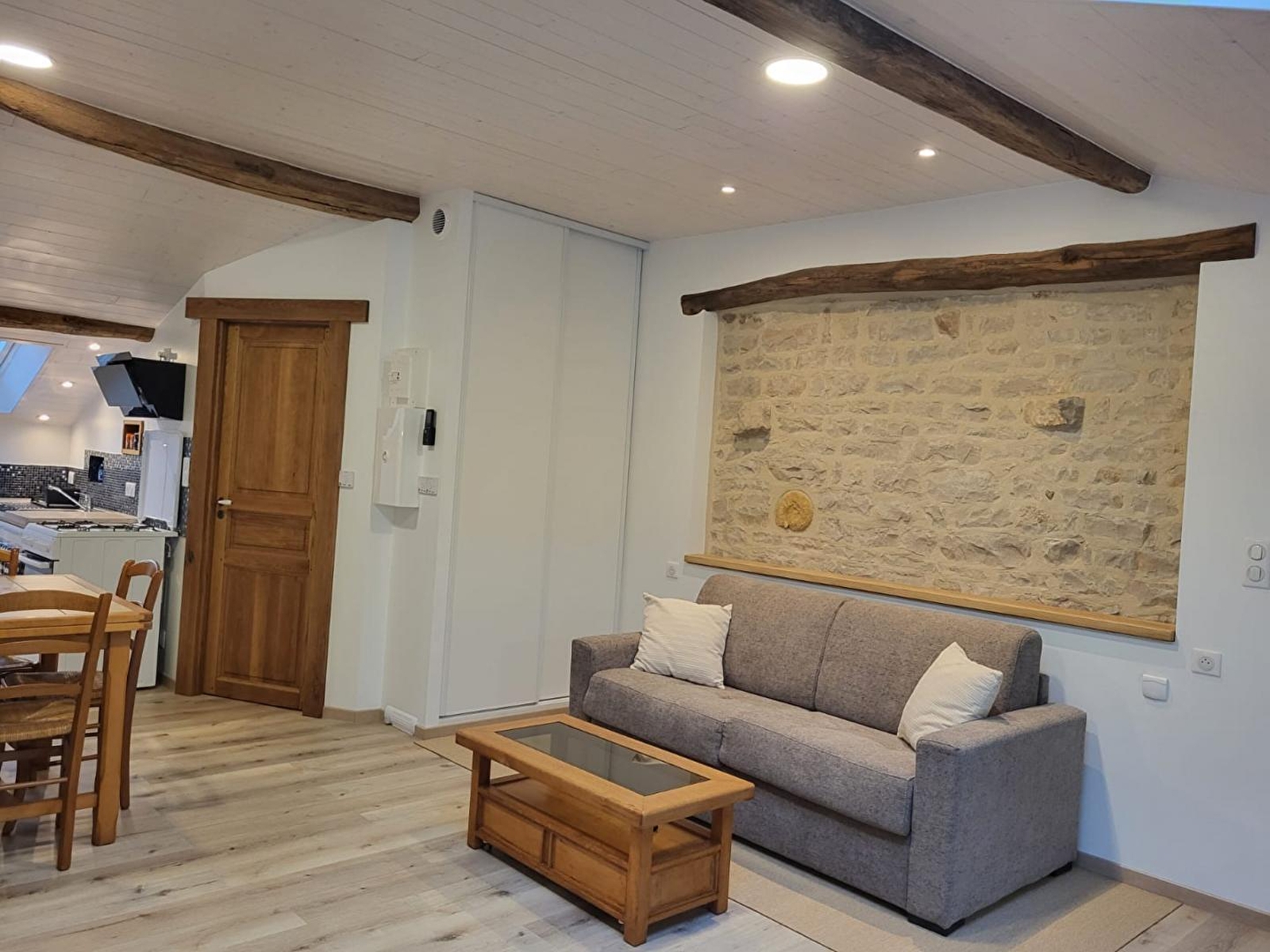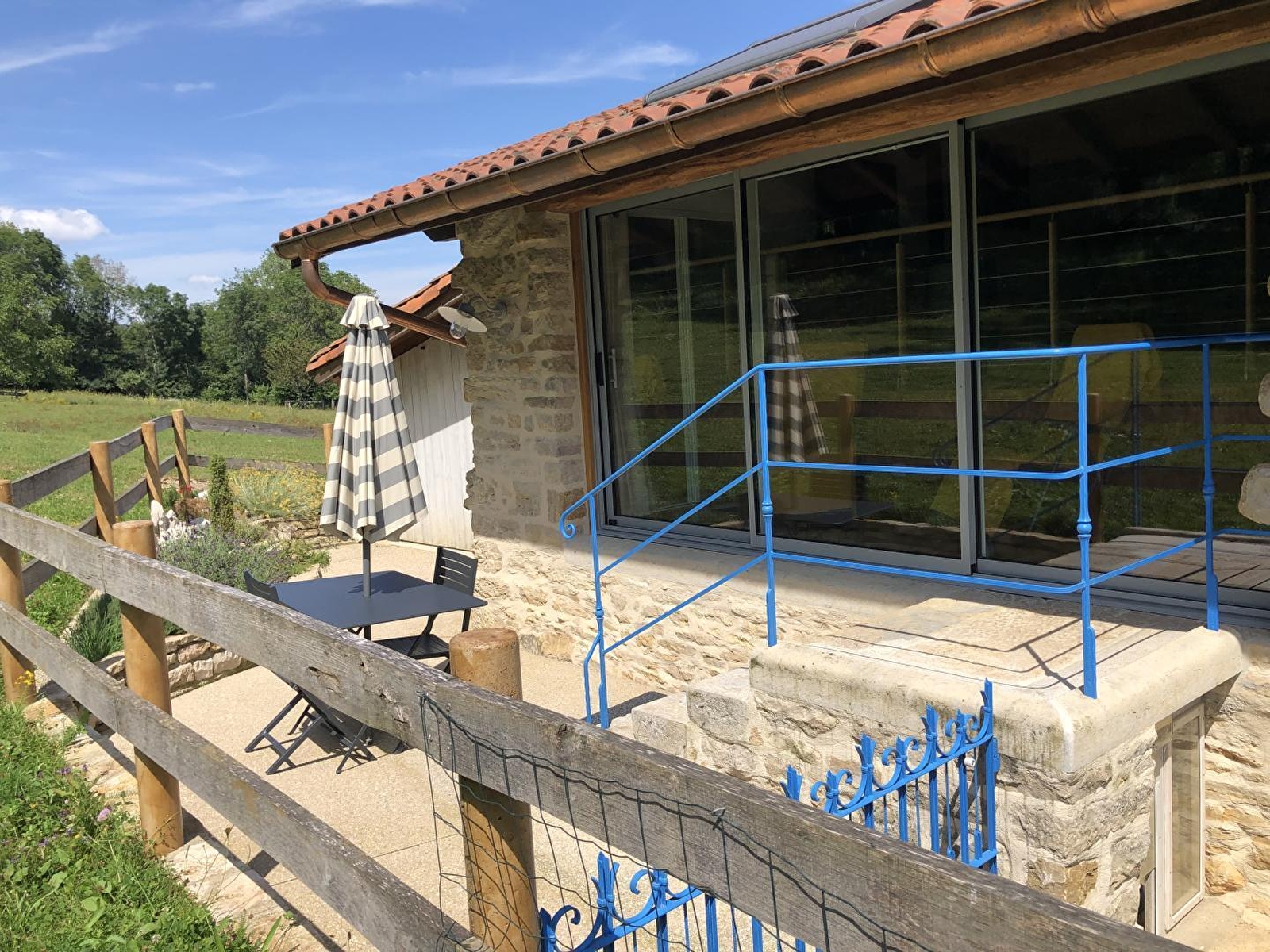 Diese Unterkunft befindet sich in einem Weiler mit 50 Seelen und ist in einem Haus untergebracht, das an das der Eigentümer angrenzt. Sie ist jedoch sehr unabhängig, da der Zugang über eine Steintreppe an der Rückseite des Hauses erfolgt. Diese neue, sehr gut ausgestattete Unterkunft ist eine Mischung aus Alt und Neu und wurde von ihrem Besitzer mit viel Liebe zum Detail entworfen. Die sichtbaren Steine und Balken dieses Bauernhauses verleihen dieser Unterkunft viel Charme und eine warme Atmosphäre. Sie besteht aus einem hellen Wohnraum mit voll ausgestatteter Küche, Wohnzimmer mit TV, Pelletofen (Säcke werden kostenlos geliefert) und einem Schlafsofa, das eine zusätzliche Schlafmöglichkeit für 2 Personen bietet (140*190), einem Schlafzimmer mit 1 Doppelbett 140*190 und einem Badezimmer mit Dusche und WC. Eine Loggia mit 2 Liegestühlen, die zum Lesen und Entspannen einlädt, mit Blick auf die große Pferdeweide bietet Ihnen einen traumhaften Rahmen, um inmitten der Natur neue Energie zu tanken. Im Außenbereich können Sie von einer Terrasse mit Gartenmöbeln und einer Plancha profitieren. Unterstand für Auto und/oder Motorräder. Ideal gelegen für Liebhaber von Rad-, Wander- und Reittouren. Sie können auch Wälder, Seen und Wasserfälle entdecken und in 40 Minuten nach Bourg-en-Bresse fahren, um das berühmte königliche Kloster von Brou zu besichtigen. Viele lokale Produzenten und die Käserei von Nantey befinden sich in der Nähe, sodass Sie Ihren Gaumen verwöhnen können.