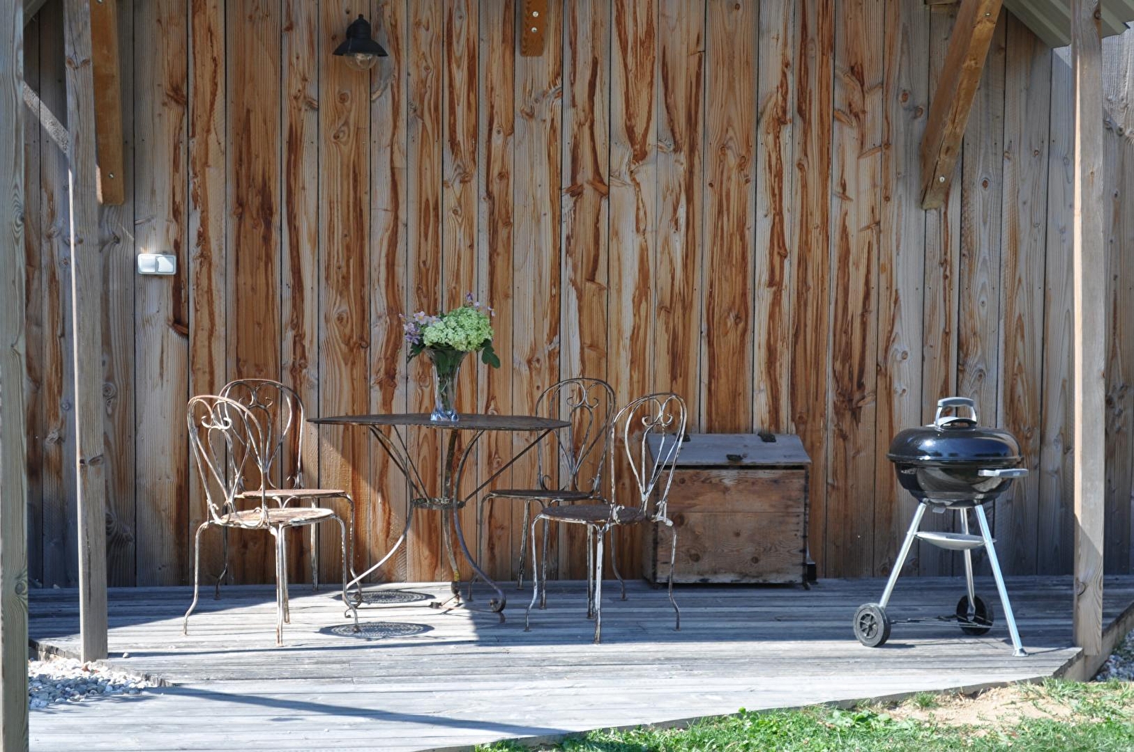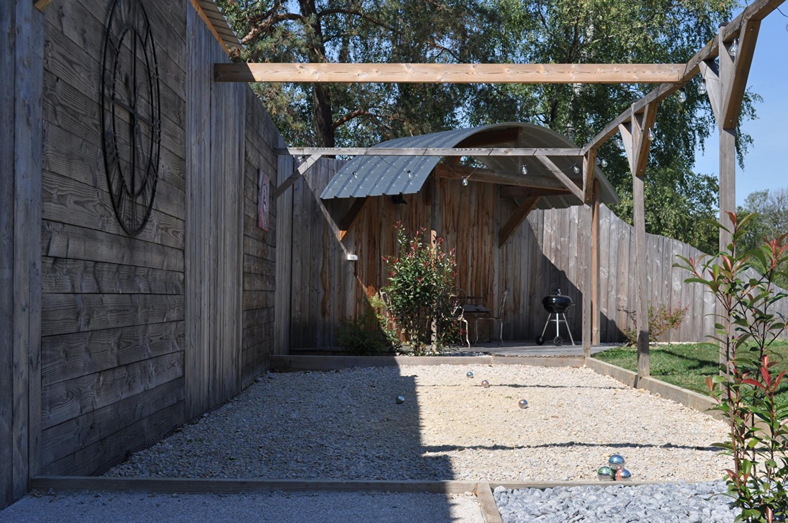 Die große, geschützte Terrasse mit Gartenmöbeln ist zu jeder Jahreszeit ideal und lädt zum Entspannen ein. Sie führt zu einem hübschen eingegrabenen Pool, der in der warmen Jahreszeit, wenn die Temperaturen es erlauben, zugänglich ist, sowie zu einem großen angrenzenden Grundstück.