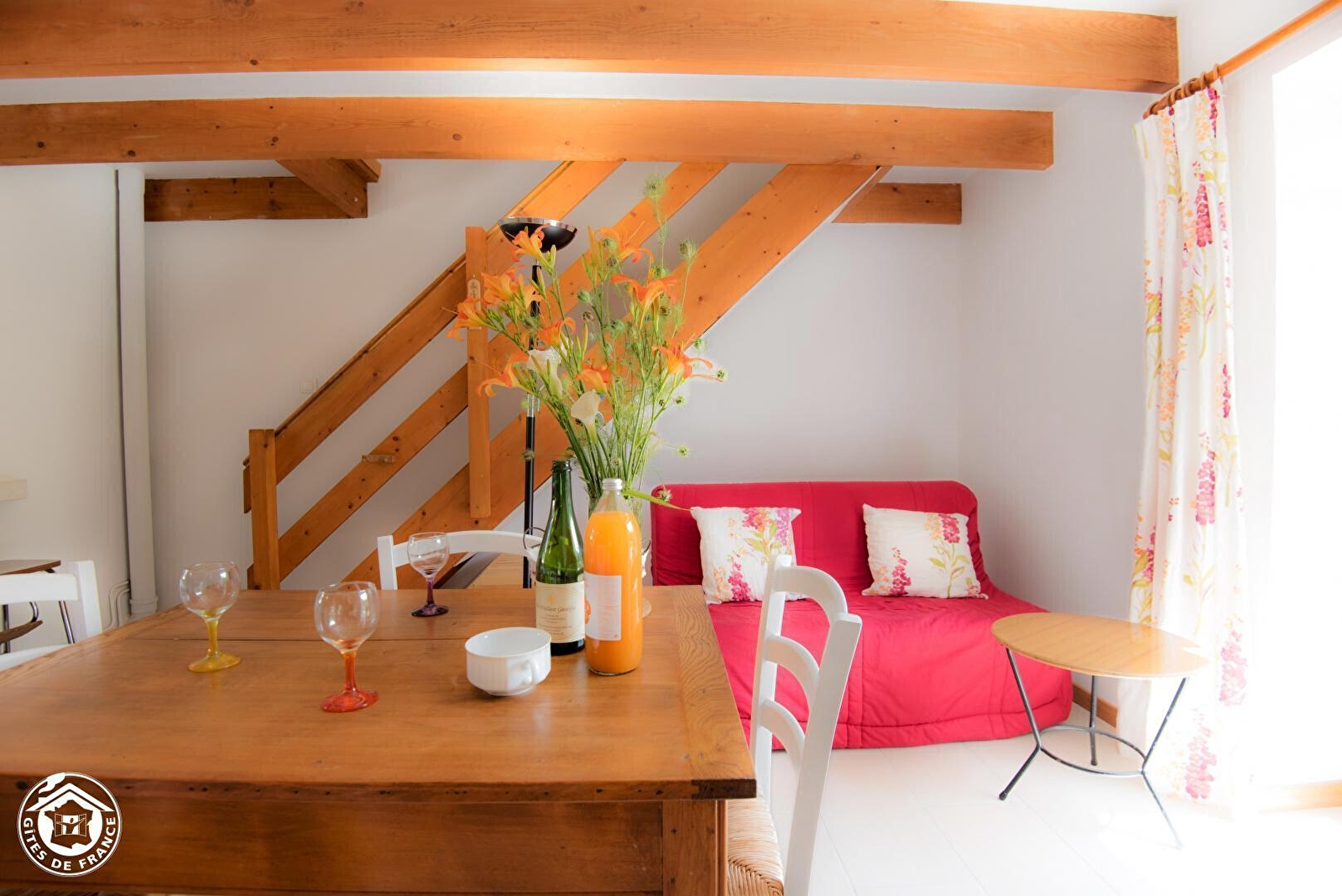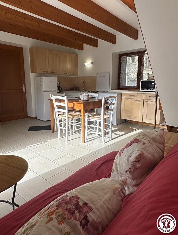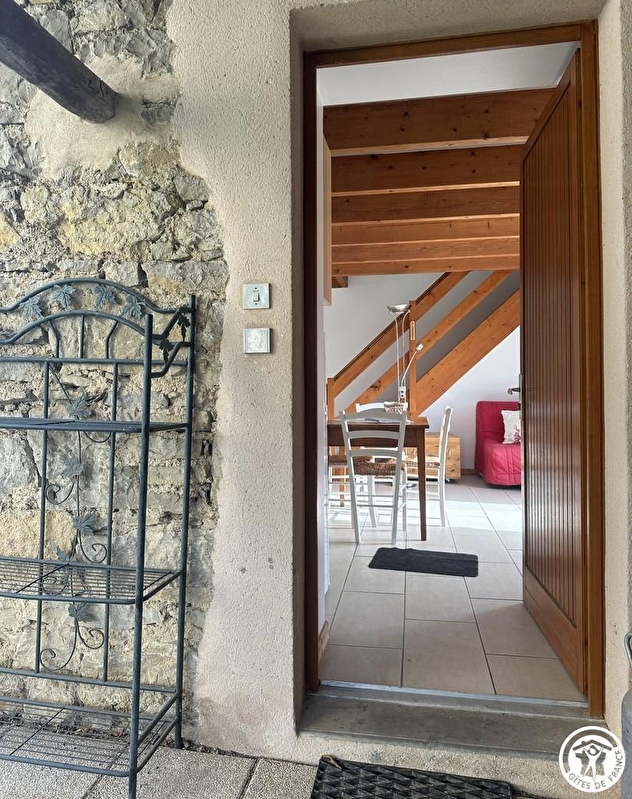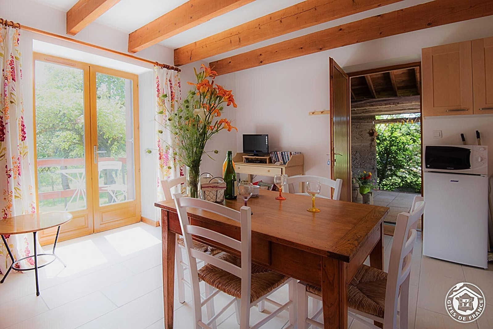 Zugang zu einer funktionellen Küche, offen zum Wohnzimmer (Schlafsofa für 2 Personen). Im Obergeschoss, ein Schlafzimmer (2 Einzelbetten 90 cm), helles Badezimmer, separates WC. Elektrische Heizung. Großes Ferienhaus (Kapazität 8-10 Personen) auf dem Grundstück. Ideal für Familientreffen. Sehenswert: die Seidenwebereien von Jujurieux, eine außergewöhnliche Kulturerbestätte im Departement Ain, Ambronay und sein Barockmusikfestival. Wanderungen am Fuße der Unterkunft, Schneeschuhwanderungen im Winter, 15 km vom Plateau d'Hauteville entfernt.