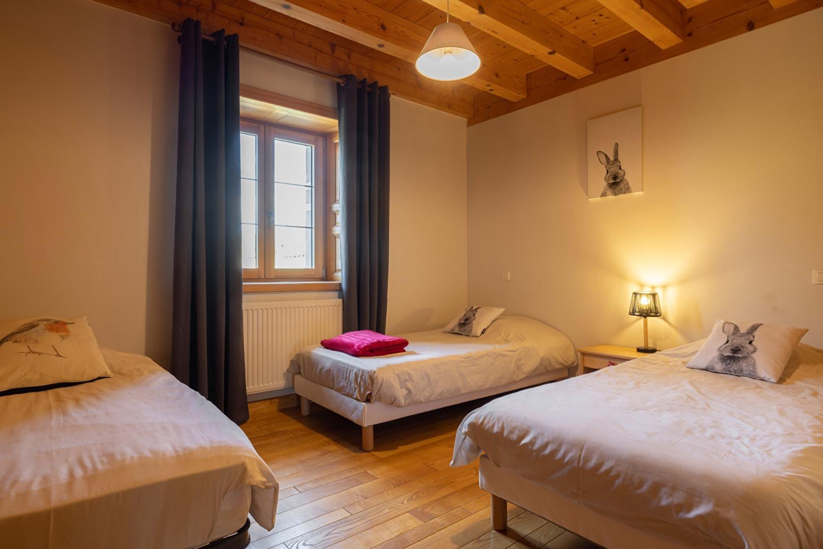 Wenn Sie sich nach Ruhe und Natur sehnen, dann ist dieses Ferienhaus, das an das Haus der Eigentümer angrenzt, genau das Richtige für Sie! Stock eines alten Bauernhauses aus dem Jahr 1838. Diese komplett renovierte Unterkunft besteht aus einem Wohnraum mit voll ausgestatteter Einbauküche, einem Schlafzimmer mit drei Einzelbetten, einem Schlafzimmer mit einem 140 cm breiten Bett, einem Badezimmer mit Badewanne und einer separaten Toilette. Im Obergeschoss befinden sich ein Zwischengeschoss mit Sitzecke und Fernseher, ein kleines Schlafzimmer mit 2 Einzelbetten, ein Schlafzimmer mit 1 Doppelbett und 1 Einzelbett und ein Badezimmer mit Dusche und WC. Für Ihren Komfort werden die Betten bei Ihrer Ankunft gemacht. Im Außenbereich können Sie auf einer 20 m² großen, geschützten Terrasse mit Gartenmöbeln, Liegestühlen und Grill den Blick auf die umliegende Natur genießen. Ideale Lage für Schneeschuhwanderungen und Wanderungen.
