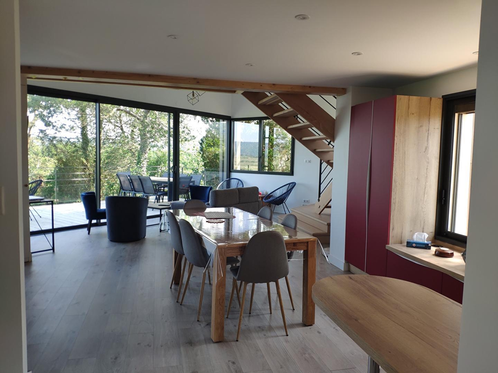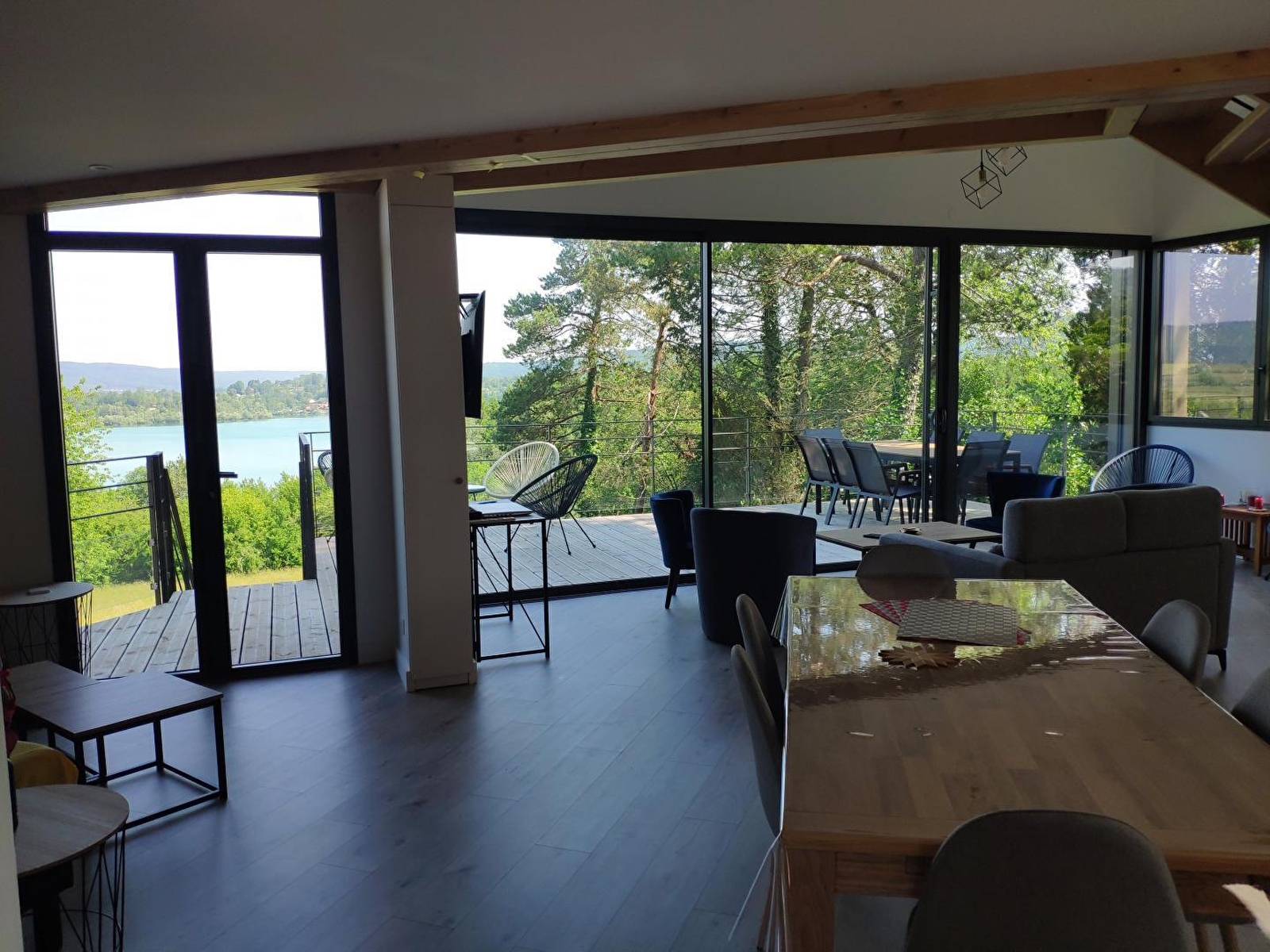 Haben Sie Lust, Ihren Urlaub in einem kleinen Paradies zu verbringen? Dann ist dieses Ferienhaus genau das Richtige für Sie! Sie werden nicht müde werden, den Panoramablick auf den See von Chalain und die umliegende Natur zu bewundern... Dieses behindertengerechte Ferienhaus besteht im Erdgeschoss aus einem hellen Wohnraum mit voll ausgestatteter Küche, einer Sitzecke mit direktem Zugang zur Terrasse mit elektrischem Schlafsofa für 2 Personen, einem Badezimmer mit großer begehbarer Dusche und einem separaten WC. Im Obergeschoss befinden sich 2 Schlafzimmer mit jeweils 2 Einzelbetten (90*200), die zusammengestellt werden können, ein Badezimmer mit Dusche und WC. Auf der Terrasse mit Blick auf den See, die mit Gartenmöbeln und Plancha ausgestattet ist, können Sie die schönen Tage genießen und die herrliche Landschaft bewundern. Für Ihren Komfort werden Bettwäsche und Handtücher bereitgestellt. Die Lage ist ideal, da Sie den See zu Fuß in etwa 10 Minuten erreichen können und die Wasserfälle von Hérisson etwa 20 Minuten mit dem Auto entfernt sind.