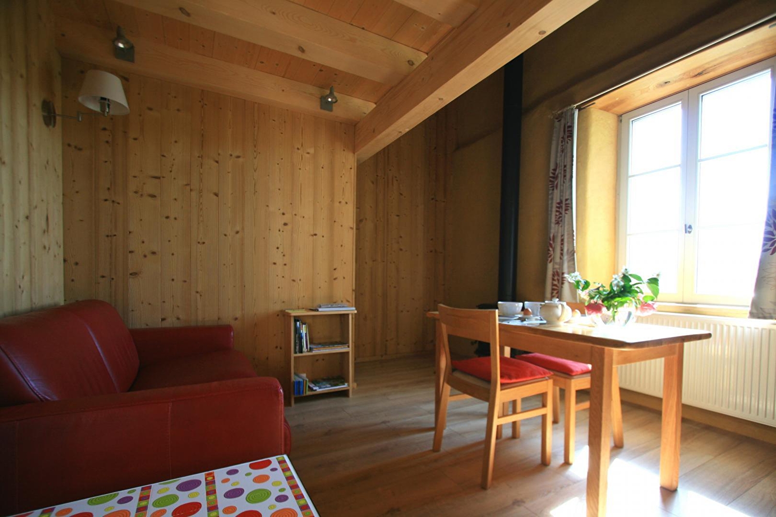 Die Unterkunft ist in einem alten Bauernhaus aus der Comté im Angillon-Tal auf der ersten Hochebene des Jura untergebracht, das sorgfältig und ausschließlich mit ökologischen Materialien restauriert wurde. Das gemütliche Studio mit separatem Eingang im ersten Stock ist nach der aufgehenden Sonne ausgerichtet und besitzt alle Vorzüge, um Ihnen einen angenehmen Aufenthalt zu bereiten. Sie finden eine Küche, die zu einer Sitzecke (mit Holzofen) hin offen ist, eine separate Toilette, ein Zwischengeschoss mit einem großen Doppelbett (160*200), Flachbildfernseher und Blu-ray und ein Badezimmer. Terrasse, Liegestuhl und Grill sind im großen Park des Anwesens aufgestellt. Edith und Bruno werden Sie gerne über die verschiedenen Sehenswürdigkeiten informieren, die es zu besichtigen gibt. Zögern Sie nicht länger und erholen Sie sich im Gîte de l'Angillon! Es besteht die Möglichkeit, eine weitere Unterkunft für 2 Personen zu mieten, die sich im selben Gebäude befindet: Gîte du Tiercelet. Spezielle Preise für Kurgäste auf Anfrage bei den Eigentümern.