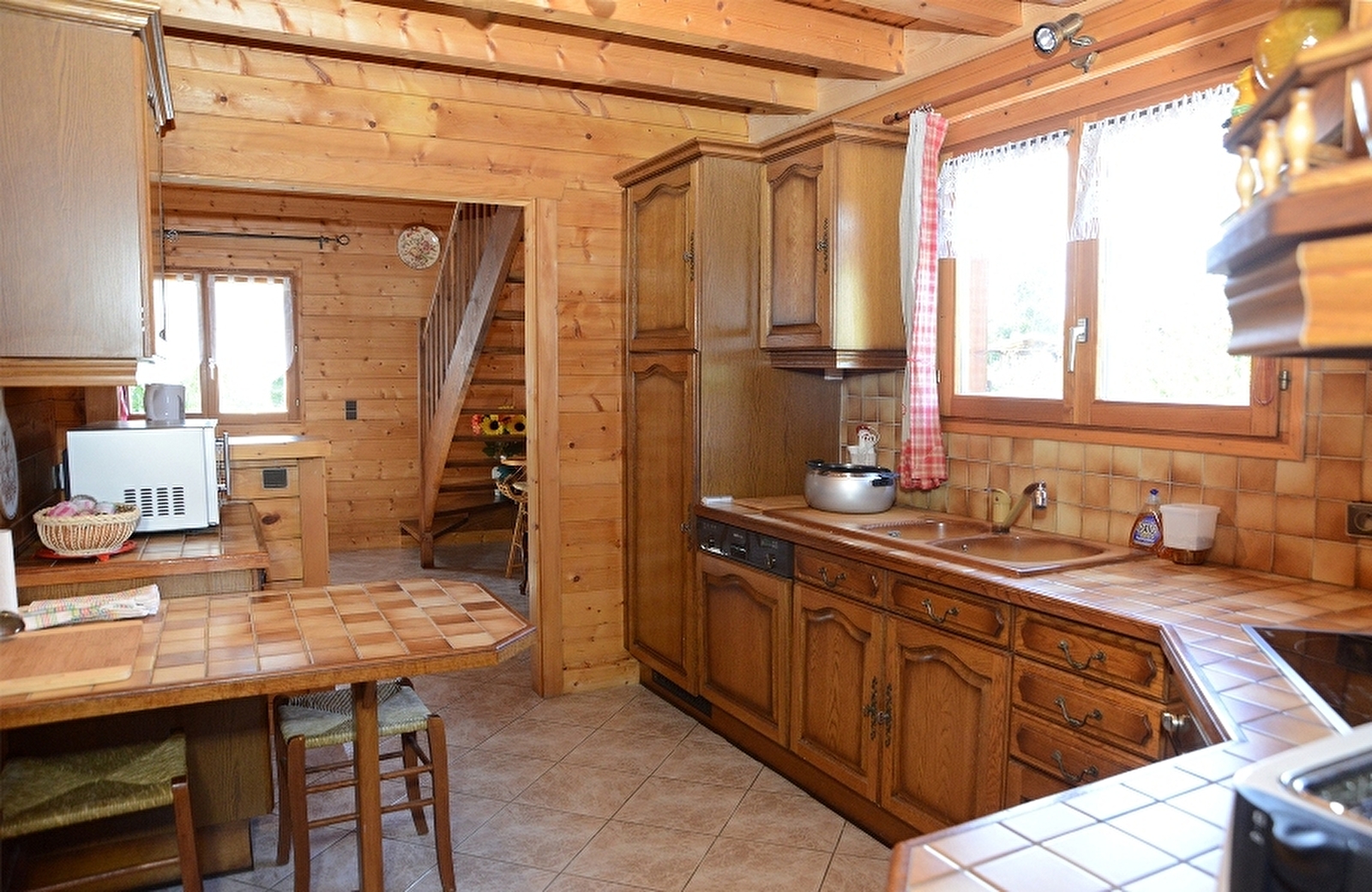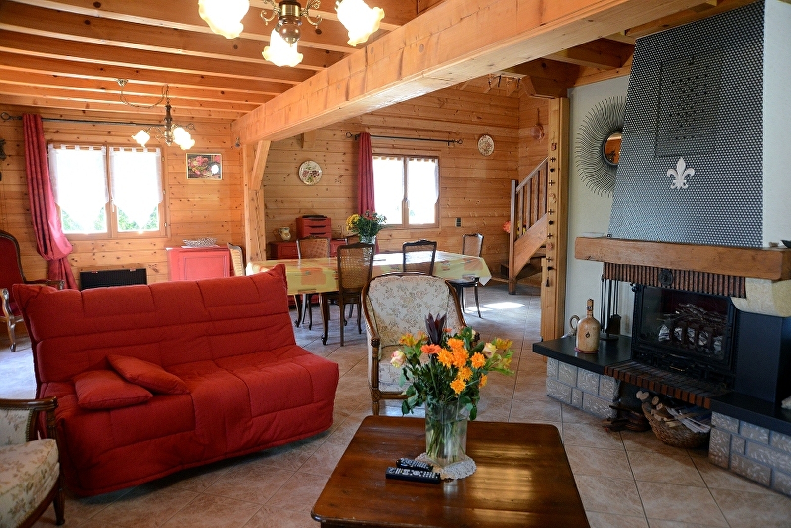 Sehr schönes Holzchalet mit atemberaubendem Blick auf den See von Vouglans. Sie erreichen es über eine kleine Außentreppe mit acht Stufen. Sie verfügen über einen großen Wohnraum mit Wohnzimmer (schöner Kamin), der auf einen großen Balkon mit Gartenmöbeln und Grill führt. Separate Einbauküche, 1 Schlafzimmer mit einem Doppelbett, Badezimmer, separates WC. Im Obergeschoss: ein Schlafzimmer mit einem Doppelbett (160 cm), ein Schlafzimmer mit zwei Einzelbetten und ein weiteres mit einem Einzelbett, Badezimmer mit Dusche und WC. Die Betten sind mit Federbetten ausgestattet und bei der Ankunft bezogen. Möglichkeit von 2 zusätzlichen Schlafplätzen für Kinder (in diesem Fall Bettwäsche mitbringen). Im Untergeschoss Abstellraum für Fahrräder, Skier oder Angelboot. Strom vom 15. März bis 15. Oktober inklusive, Holz wird kostenlos zur Verfügung gestellt. Bitte bringen Sie Ihre Handtücher mit. Ein ideales Ferienhaus für einen Aufenthalt mit der Familie oder mit Freunden, um die Ruhe und Gelassenheit dieser außergewöhnlichen Landschaft zu genießen.