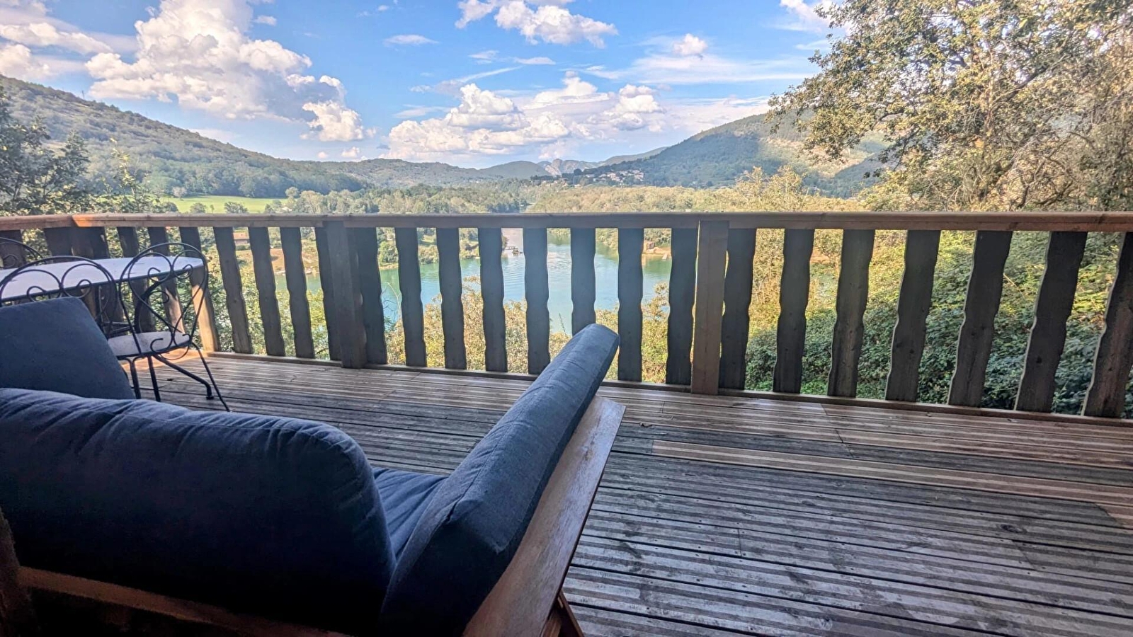 Der Zugang erfolgt direkt über den großen Wohnraum, der durch zwei große Fensterfronten auf die rechteckige Terrasse von 17 m² mit Blick auf den Fluss Ain verlängert wird. An schönen Tagen können Sie auf der Terrasse die Sonne am Nachmittag und einen Teil des Abends genießen. Der Hauptwohnraum in frühlingsgrünem Ambiente ist mit einem Essbereich in "Gartenatmosphäre" ausgestattet und verwandelt sich abends in einen Schlafraum mit einem Schlafplatz für zwei Personen (Bett 150 cm), der in eine Wandaufbewahrung/ein Wandschränkchen integriert ist. Das offene Zwischengeschoss mit zwei 90 cm breiten Betten, das über eine "schmale" Treppe erreichbar ist, führt ebenfalls in den Wohnraum. Sein kokonförmiger Zugang ermöglicht eine echte Privatsphäre. Etwas abseits des Wohnraums, am Fuße der Treppe zum Zwischengeschoss, befindet sich eine praktische und komfortable Küchenzeile mit 2 Ceranfeldern, einem kleinen Kühlschrank mit Gefrierfach und der Mikrowelle. Der Zugang zum Badezimmer erfolgt vom Wohnraum aus. Bei Ihrer Ankunft erhalten Sie ein Set mit den wichtigsten Produkten. Le Betet ist Teil eines Naturparks mit insgesamt 7 Hütten und Lodges, die vollständig in den Buchsbaumwald integriert sind. Sie liegen auf den Anhöhen von Serrières sur Ain, oberhalb des Flusses Ain. Jede Hütte hat ihre eigene Identität und ist auf Pfählen in 2 Metern Höhe über dem Boden errichtet, die Zugänge und Terrassen sind vollständig gesichert. Ein außergewöhnlicher Ort in den Schluchten des Ain, an dem man Kanu fahren, rudern oder einfach nur baden kann. Hoch oben auf den Klippen können Sie wandern, mit GR und PR.