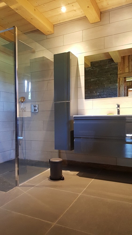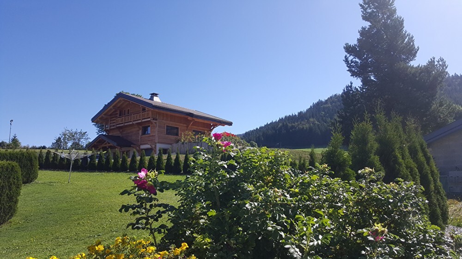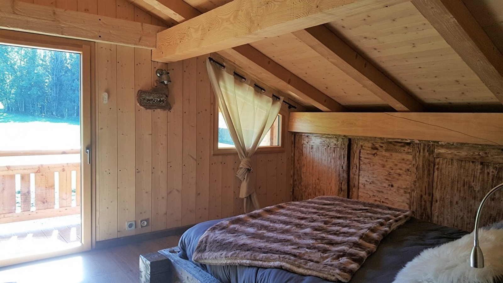 - Der Zugang zum Balkon, der seinerseits auf die Vorderseite des Chalets zeigt.