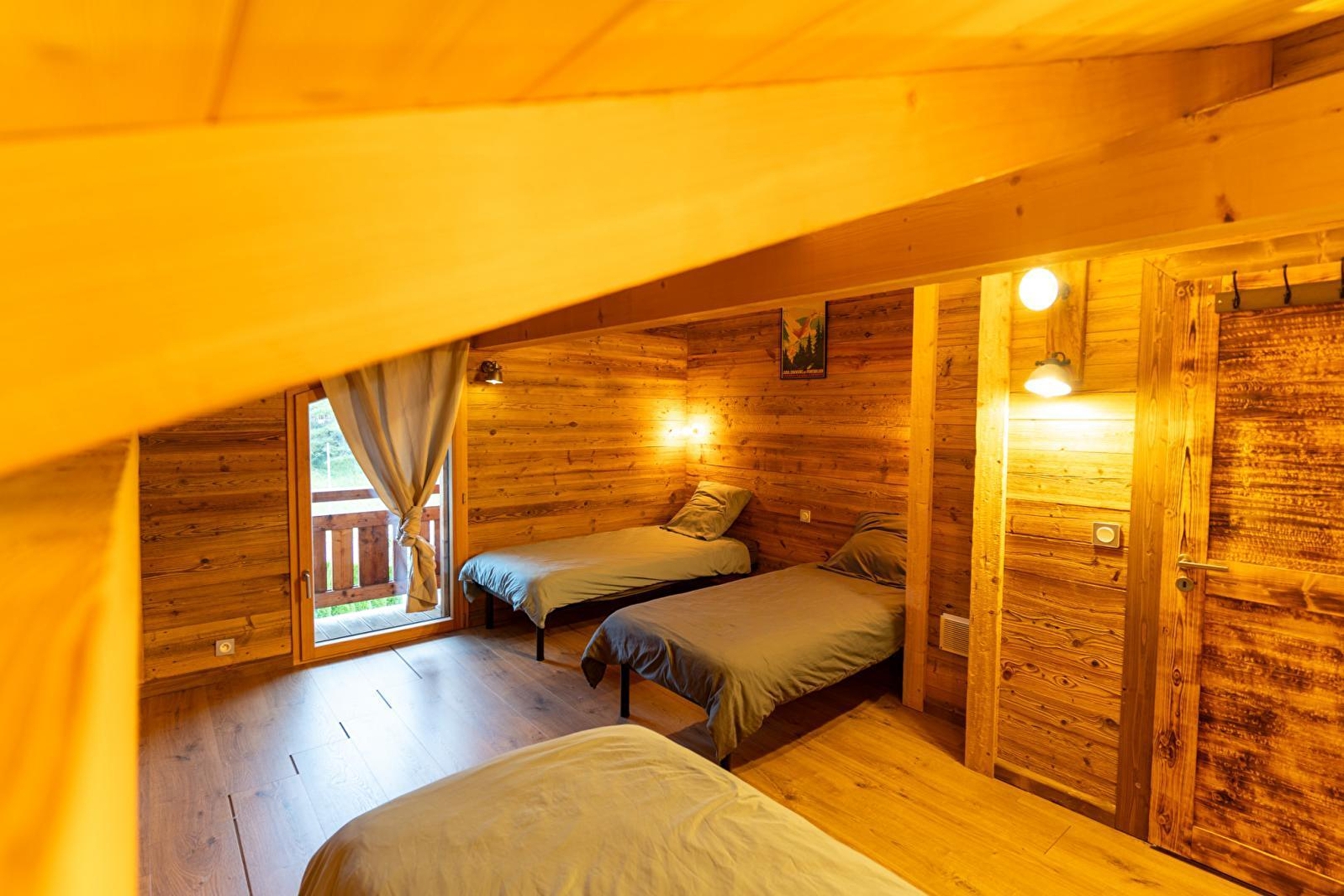 - ein drittes Schlafzimmer mit 3 Betten von 90x200cm mit einem Balkon mit Blick auf das Dorf.