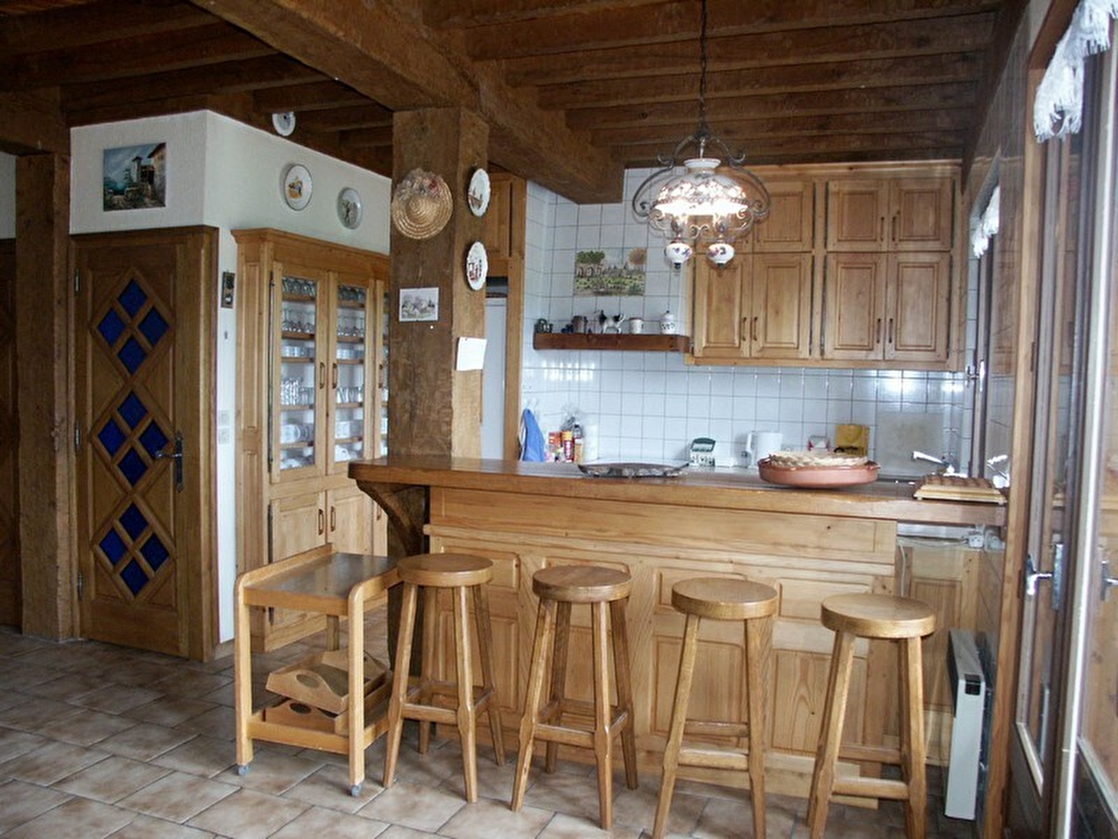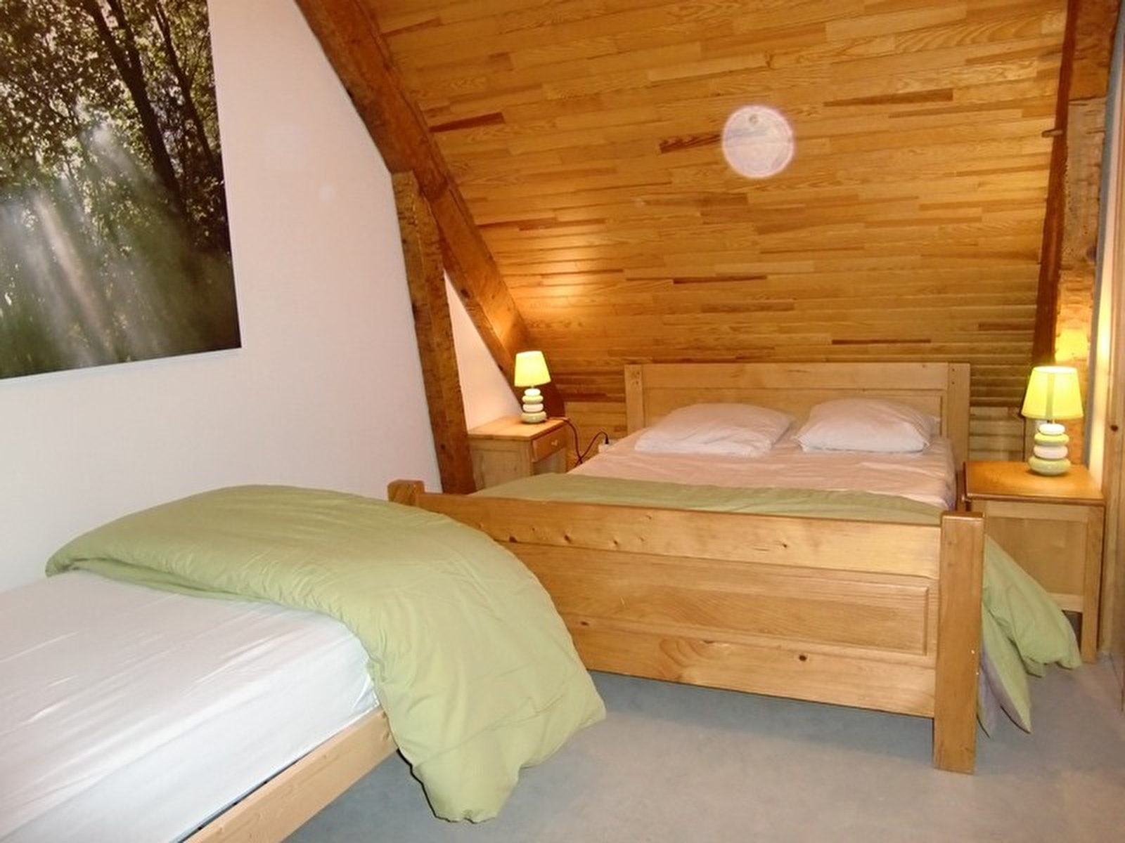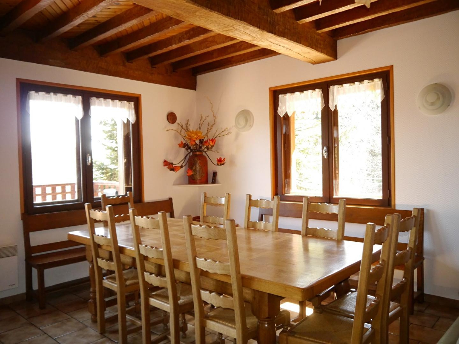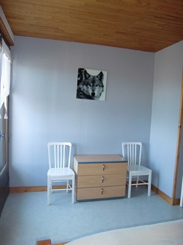 Chalet indépendant avec au 1er étage: séjour-salon-cuisine, salle d'eau. Au 2ème étage: ch1: 1 lit 2 pl, 1 lit 1 pl, ch2: 1 lit 2 pl, 1 lit 1 pl, ch3: 1 lit 2 pl, 1 lit 1 pl, salle de bains. Balcon-terrasse de 35 m2, cour, salon de jardin, barbecue, Chauffage électrique et bois. Charges non comprises. Chaise bébé à disposition. Location de draps: 8€/paire, option ménage: 60€. Piscine extérieure à 2 km. Le chalet est situé sur les hauteurs du village offrant une superbe vue sur la combe. Par fort enneigement,le stationnement se fait au début du chemin pentu de la propriété ou dans le village à 200m. Taxe de séjour : 0,70€/pers/nuit.