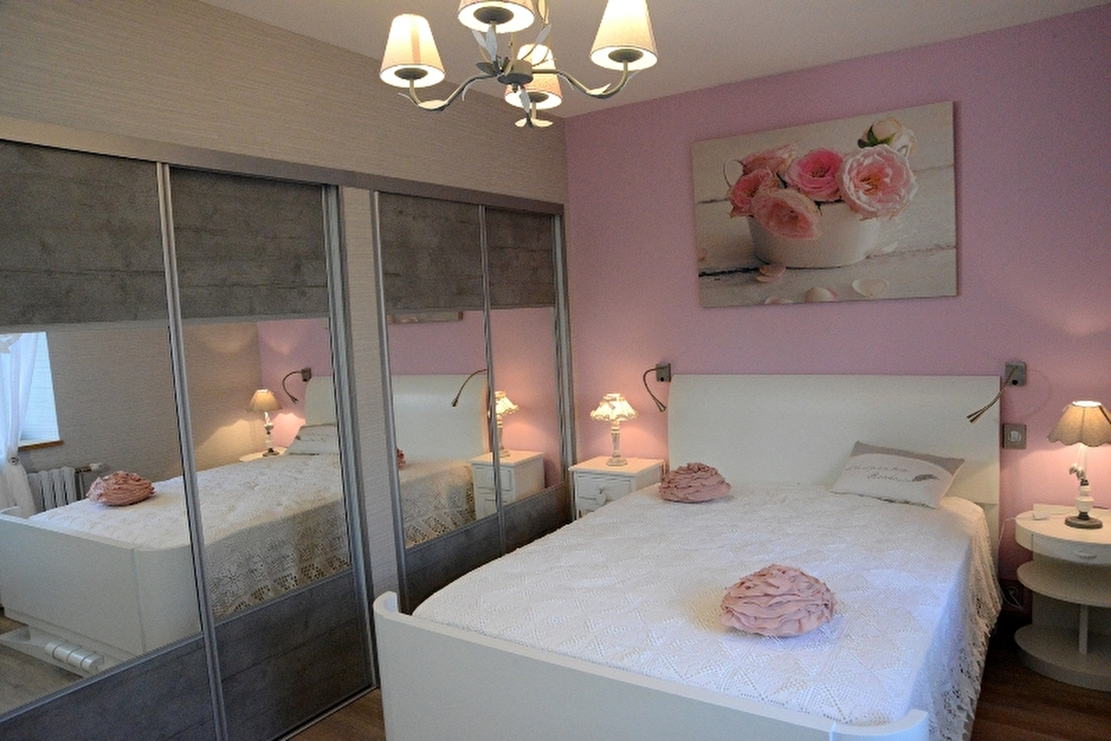 Ein überraschendes, komplett renoviertes Ferienhaus im 1. Stock in einem völlig unabhängigen Reihenhaus. Stoßen Sie die Tür dieses Ferienhauses Le Clos des Grillons auf und entdecken Sie die Qualität und den Komfort dieser schönen Leistung, die fast alles von einem 4-Ähren-Haus hat. Ihnen steht ein großer, heller Wohnraum mit einer modernen, voll ausgestatteten Küche, einem gemütlichen Esszimmer und einem entspannenden Wohnbereich zur Verfügung. Das Ferienhaus verfügt über 3 geschmackvoll eingerichtete Zimmer, eines davon mit einem 160x200 cm breiten Bett. Ein Zimmer verfügt außerdem über ein Bett für 1 zusätzliche Person, falls nötig. Die Eigentümerin hat sich ein kleines Spielzimmer für Kinder ausgedacht. Ein geräumiges Badezimmer mit 2 Waschbecken, einer begehbaren Dusche und einer Eckbadewanne. 2 separate Toiletten. Der Besuch geht weiter mit der Entdeckung des Bereichs "Zen attitude": Massagesessel, 1 Duschbereich und Zugang zur Bio-Sauna (eine Trocken- oder Feuchtsaunafunktion). Großer, nicht eingezäunter Außenbereich mit Gartenmöbeln und Plancha. Ein Ferienhaus, das Sie unbedingt entdecken sollten. Betten bei der Ankunft gemacht. Zur Information: Hundehotel in der Nähe. Möglichkeit, die Gîte für 2 oder 4 Personen zu mieten: siehe Preise auf der Website der Eigentümer. Kaution für das Ferienhaus: 650€ Kaution für die Reinigung: 150 Euro. Haushalt für 2 - 4 pers 85 euros Haushalt für 5 - 7 pers 120 euros