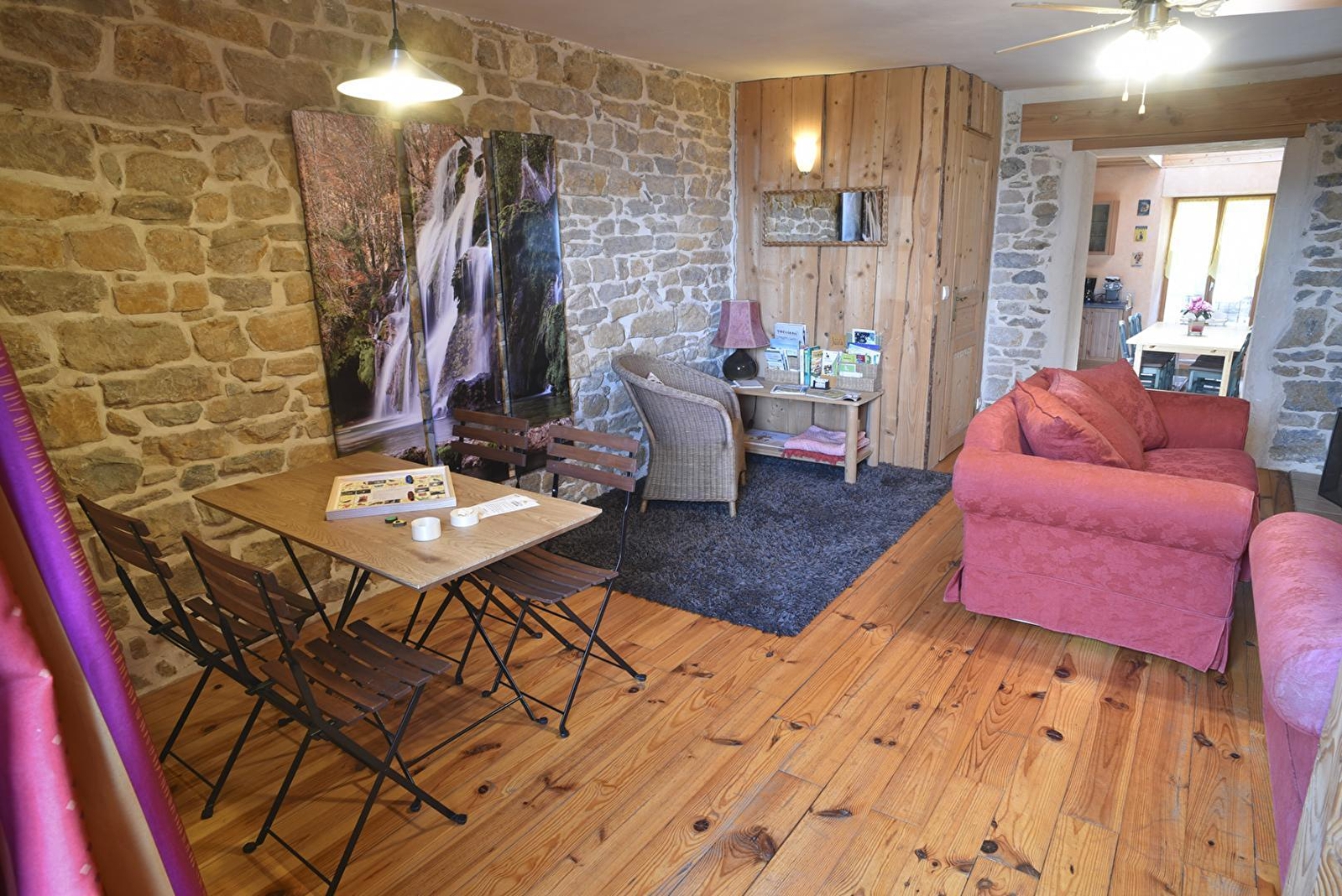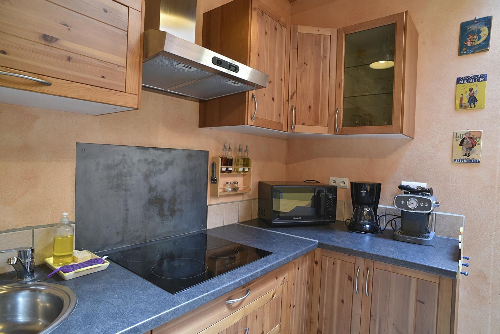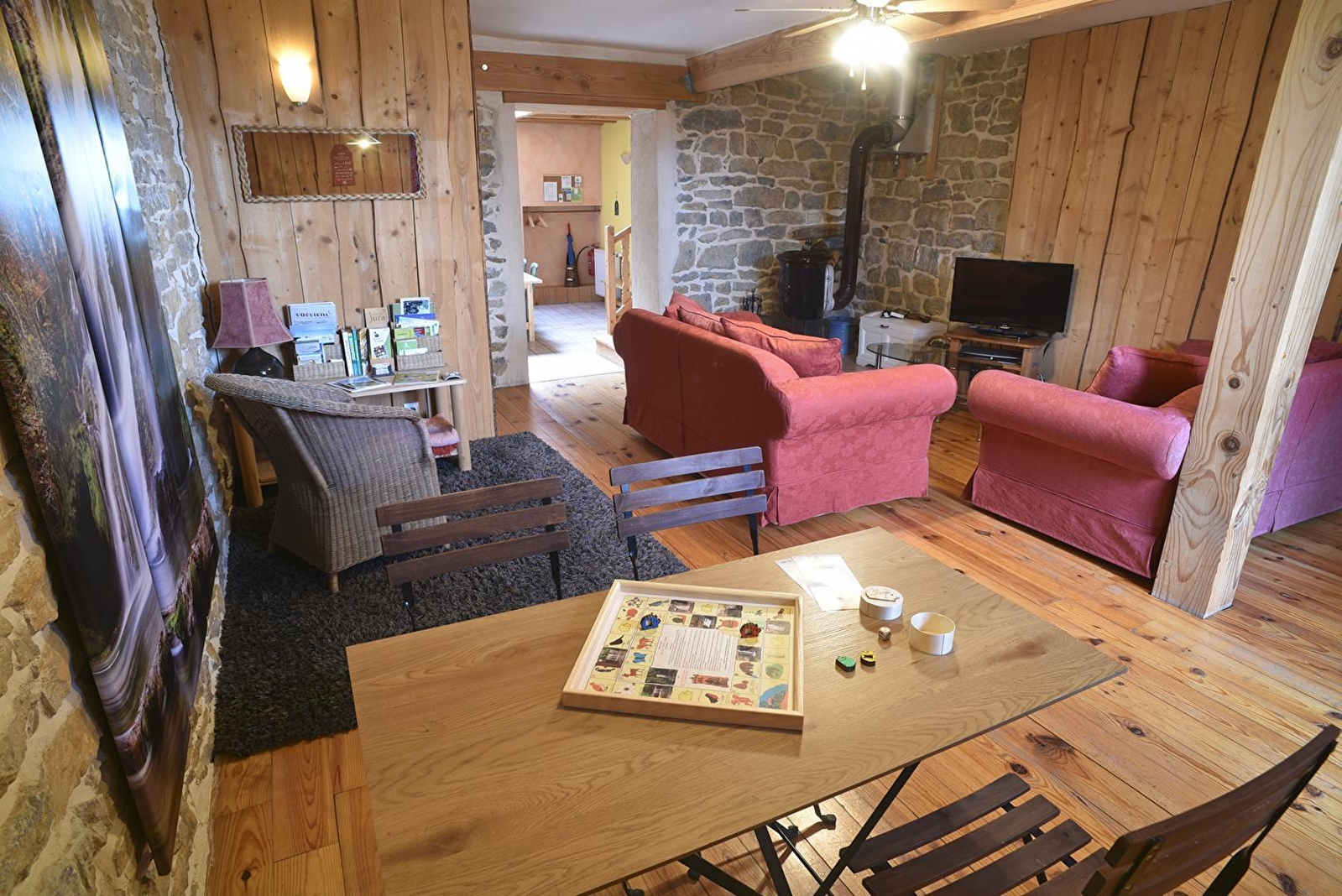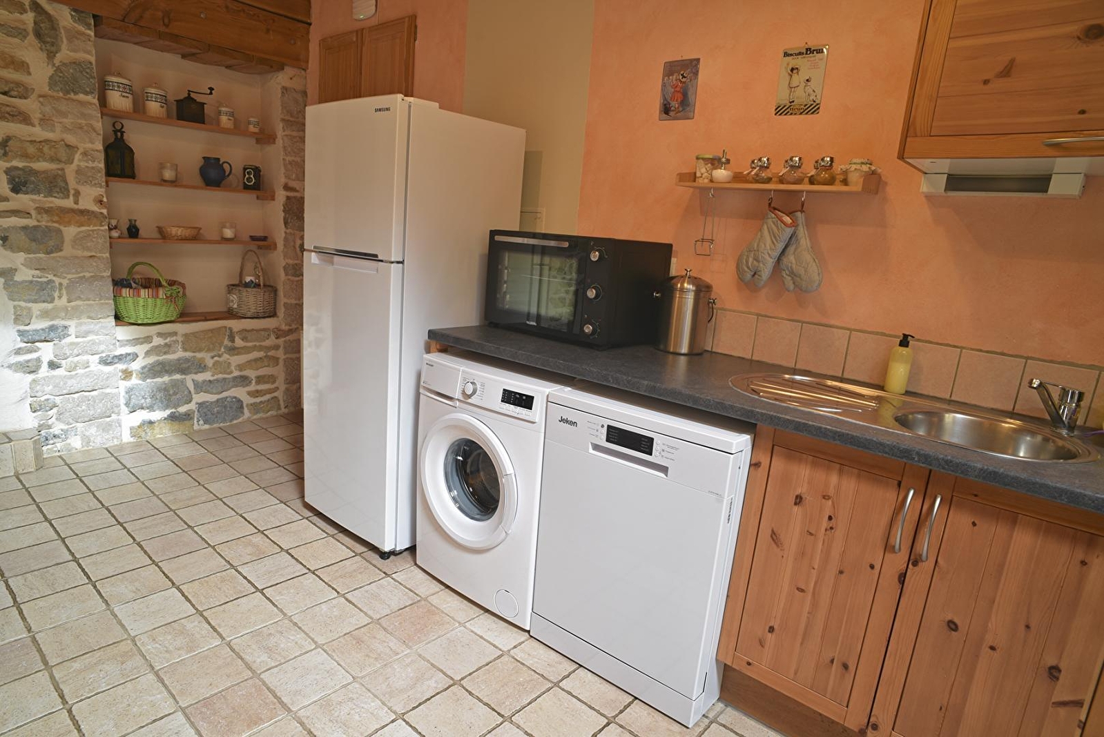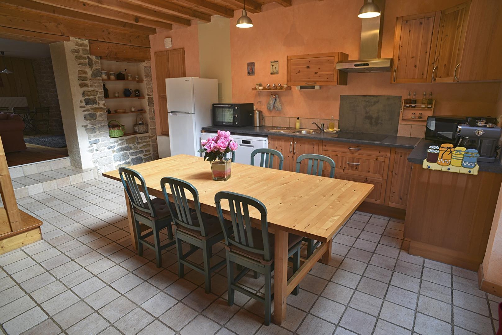 Der Eingang des Ferienhauses führt zur Küche mit allen notwendigen Geräten für einen erleichterten Alltag. Angrenzend an die Küche befindet sich ein geräumiges Wohnzimmer zum Entspannen und für die Freizeitgestaltung im Haus, zum Plaudern oder Träumen vor der Wärme des Holzofens.