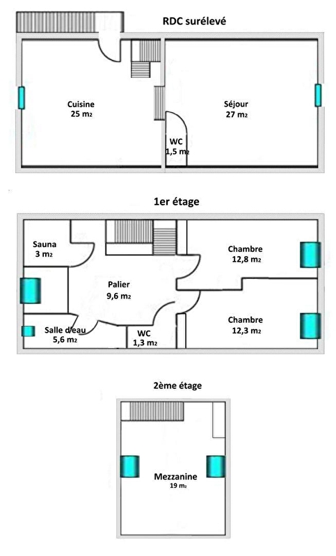Die Unterkunft verfügt auf jeder Etage über ein separates WC.