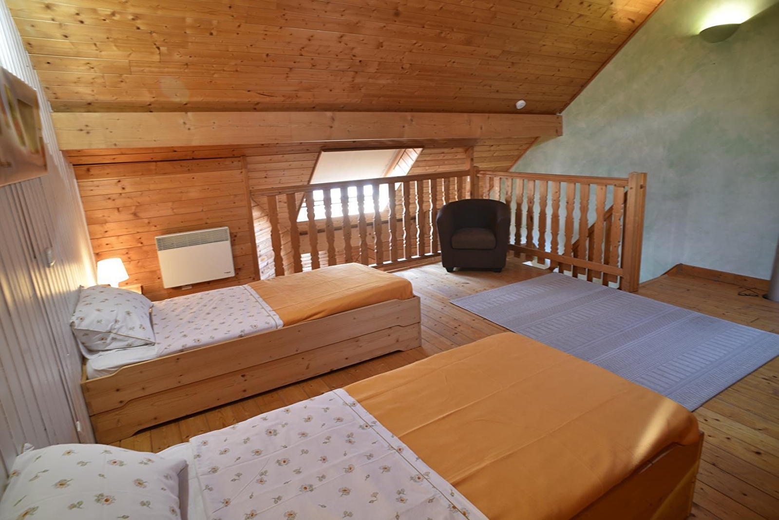 Im letzten Stockwerk befindet sich ein großes Mezzanin, das 2 bis 4 Betten von 90x190 aufnehmen kann. Die Schlafbereiche sind klimatisiert.