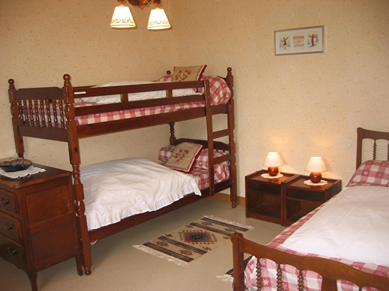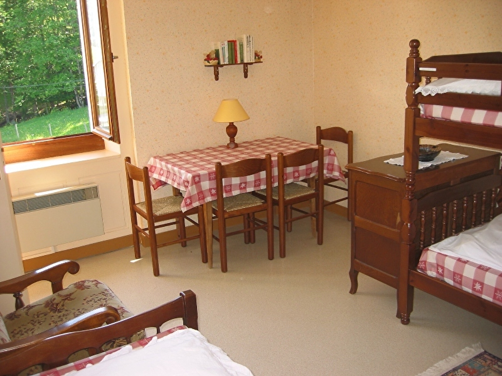 Komfortable Wohnung in idealer Lage in der Nähe der Skipisten und zahlreicher Wanderwege. Stock: Wohnraum mit Küche, Essbereich und Entspannungsecke, 1. Schlafzimmer mit 1 Bett 140 cm und 2. Schlafzimmer mit 1 Einzelbett 100x190 cm und 2 Einzelbetten (Etagenbett). Badezimmer mit Dusche, 2 Waschbecken, separates WC. Nicht eingezäuntes Grundstück rund um die Unterkunft zu Ihrer Verfügung mit Gartenmöbeln. Private Garage. Empfang von Tieren: sich bei den Eigentümern erkundigen.