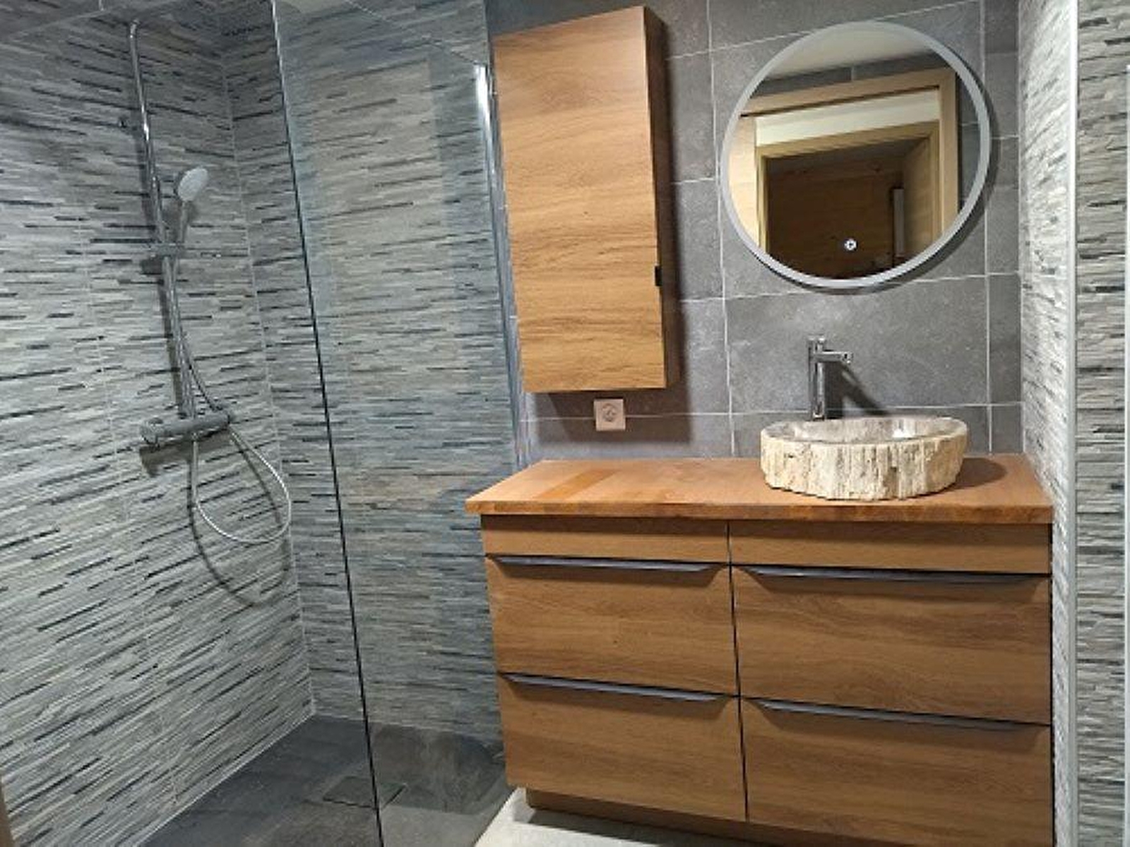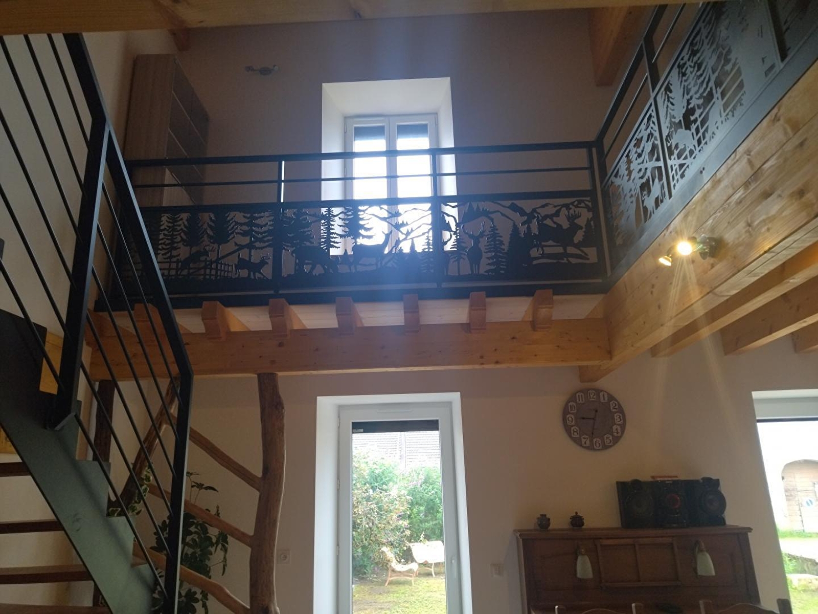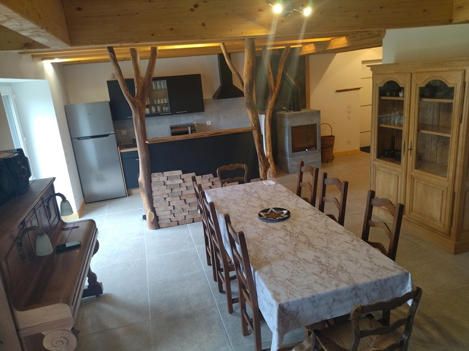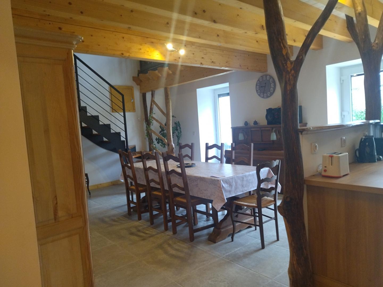 Dieses komplett renovierte Haus liegt an der Straße, die zum See von Chalain führt, und ist der ideale Ort für Ihren nächsten Urlaub mit der Familie oder mit Freunden. Es besteht im Erdgeschoss aus einem großen, hellen Wohnraum mit voll ausgestatteter Küche, einem Essbereich und einer Sitzecke mit Holzofen (kostenlos), einem Schlafzimmer mit einem Doppelbett (140*190), einem Badezimmer mit Dusche und einem separaten WC. Im Obergeschoss befinden sich ein Mezzanin, ein Wohnzimmer mit TV, 2 Schlafzimmer mit je 2 Einzelbetten (80*200) und ein Schlafzimmer mit 2 Etagenbetten (80*190), ein Badezimmer mit Dusche und WC. Im Außenbereich können Sie eine überdachte Terrasse mit Gartenmöbeln und Grill sowie eine Gartenecke mit Liegestühlen nutzen.