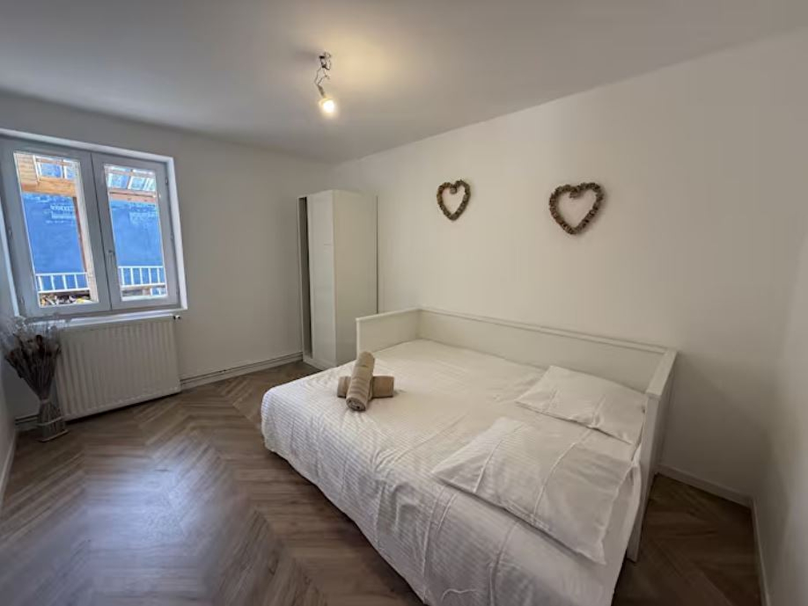 Die Wohnung verfügt über zwei Schlafzimmer mit zwei Doppelbetten und einem Schlafsofa. Ein geräumiges Badezimmer und eine voll ausgestattete Küche.