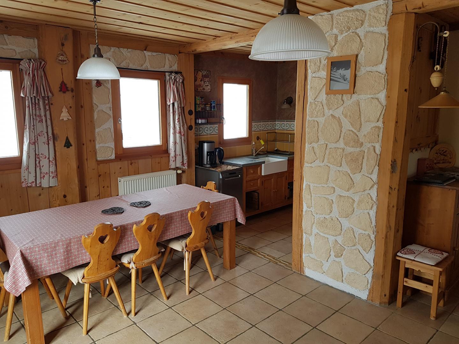 Im Herzen des regionalen Naturparks Haut Jura, auf 1200 m Höhe und am Fuße der Langlaufloipen und Wanderwege, befindet sich ein wunderschönes Ferienhaus mit einem herrlichen Panorama auf die umliegende Natur und die Bergkette des Juragebirges. Im Erdgeschoss: Eingangshalle und Ski- oder Fahrradraum. Gemütlicher Wohnraum mit Entspannungsbereich, Esszimmer und voll ausgestatteter Küchenzeile. Kleines separates Wohnzimmer mit Schlafsofa und Flachbildfernseher. Badezimmer mit italienischer Dusche. Obergeschoss: 3 Schlafzimmer mit jeweils eigenem Sanitärbereich (Dusche und WC). 2 Schlafzimmer mit jeweils einem Bett von 160x200 cm und das dritte mit 4 Einzelbetten, davon ein Etagenbett. Terrasse mit Gartenmöbeln und Grill. Angrenzendes, nicht eingezäuntes Grundstück. Babyausstattung auf Anfrage erhältlich. Kostenloser WLAN-Zugang.