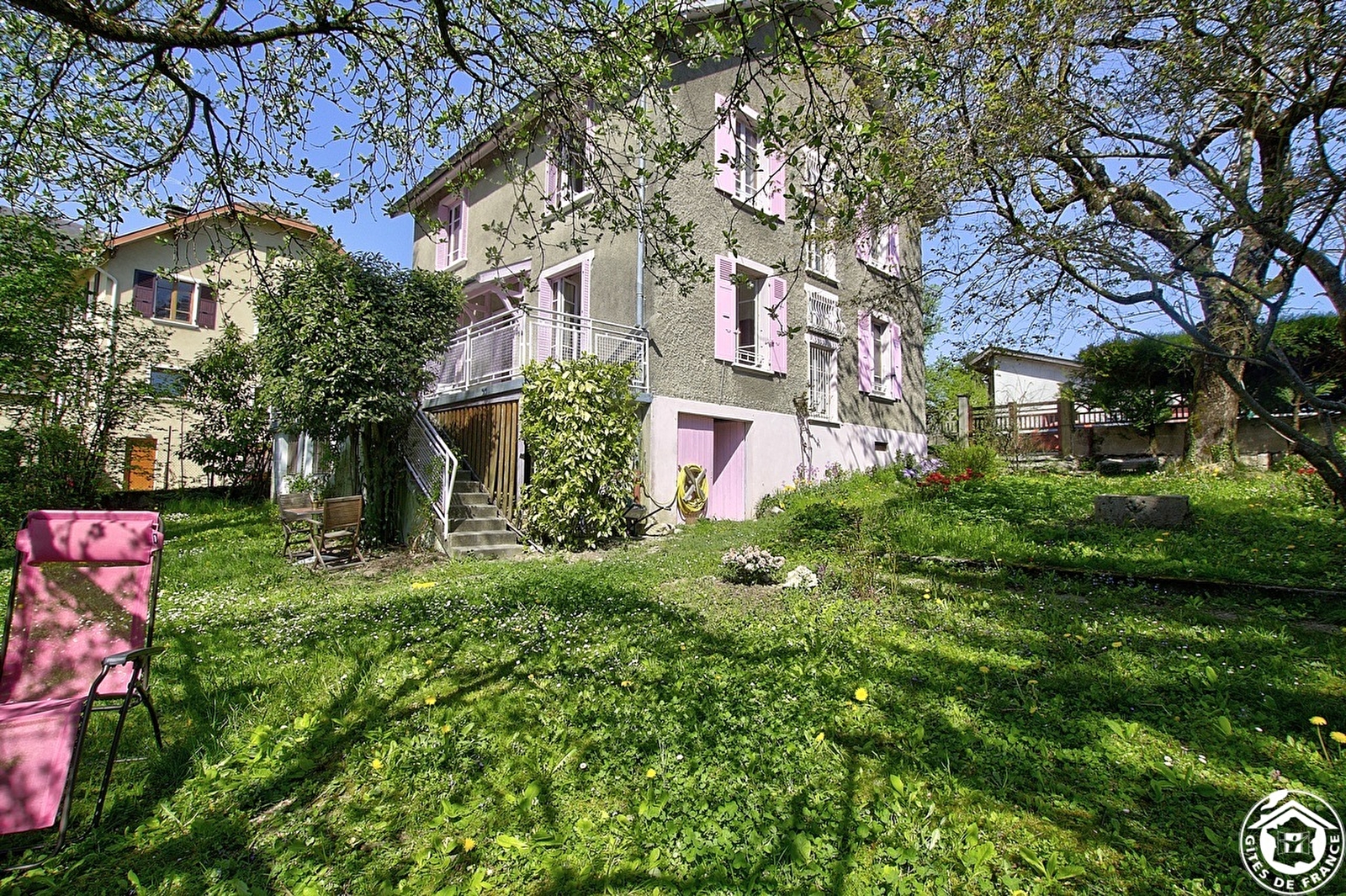 5 Minuten von Seyssel entfernt, im Herzen des Dorfes Gignez, am Fuße des Col de la Biche, wurde dieses große Familienhaus renoviert, um auf 3 Etagen mit seinen 6 Schlafzimmern, 2 Badezimmern und 3 WCs 14 Personen zu beherbergen. Öffnen Sie das Tor und Sie werden von diesem freistehenden Haus mit rosa Fensterläden verzaubert sein. Gehen Sie die 2 Steinstufen hinunter, eine helle Halle mit bunten Fliesen öffnet Ihnen die Türen zu den Wohnräumen: zu Ihrer Rechten eine unabhängige und ausgestattete Küche, zu Ihrer Linken ein kleines Wohnzimmer, um den Fernseher zu genießen; geradeaus: ein großes Wohn- und Esszimmer (40 m²), in dem die Mahlzeiten mit der Familie oder mit Freunden in aller Gemütlichkeit eingenommen werden können. In der Nebensaison können Sie sich an den Kamin kuscheln und Momente der Entspannung und Ruhe genießen. Vom Wohnzimmer aus haben Sie Zugang zu einer großen gefliesten Terrasse mit Südausrichtung, die Groß und Klein glücklich macht. Ein separates WC. Stock haben Sie über einen Parkettflur die Wahl zwischen 5 Schlafzimmern: das gelbe, das rosa und das blaue Zimmer bestehen aus zwei Betten (80*200), die Sie nach Belieben in zwei getrennte Schlafplätze oder einen großen Schlafplatz (160*200) umwandeln können; das malvenfarbene Zimmer besteht aus zwei Betten (80*200) und einem Bett (130) für eine Person und das kleine Zimmer bietet ein schmiedeeisernes Bett für eine Person (1 Bett 100*190); Badezimmer mit integriertem WC. Durch eine Tür vom Flur aus führt eine Treppe in die oberste Etage, den sogenannten "Dachboden", mit 4 Betten 90*200. Die sichtbaren Holzbalken bringen den Charme dieses großen, hellen Zimmers von 80 m² mit seinem Badezimmer, einer begehbaren Dusche und einem separaten WC mit Handwaschbecken zum Vorschein. Ein Keller, der sowohl von innen als auch von außen zugänglich ist, mit einem Waschraum (Waschmaschine und Trockner), in dem Sie Ihre Fahrräder unterbringen können. Der eingezäunte Garten mit Grill und Plancha , wird Groß und Klein begeistern. Das Haus wird zentral beheizt. Es besteht die Möglichkeit, das Auto auf dem Grundstück zu parken. Garage für 1 Auto. In der Nähe des nordischen Skigebiets Sur Lyand,