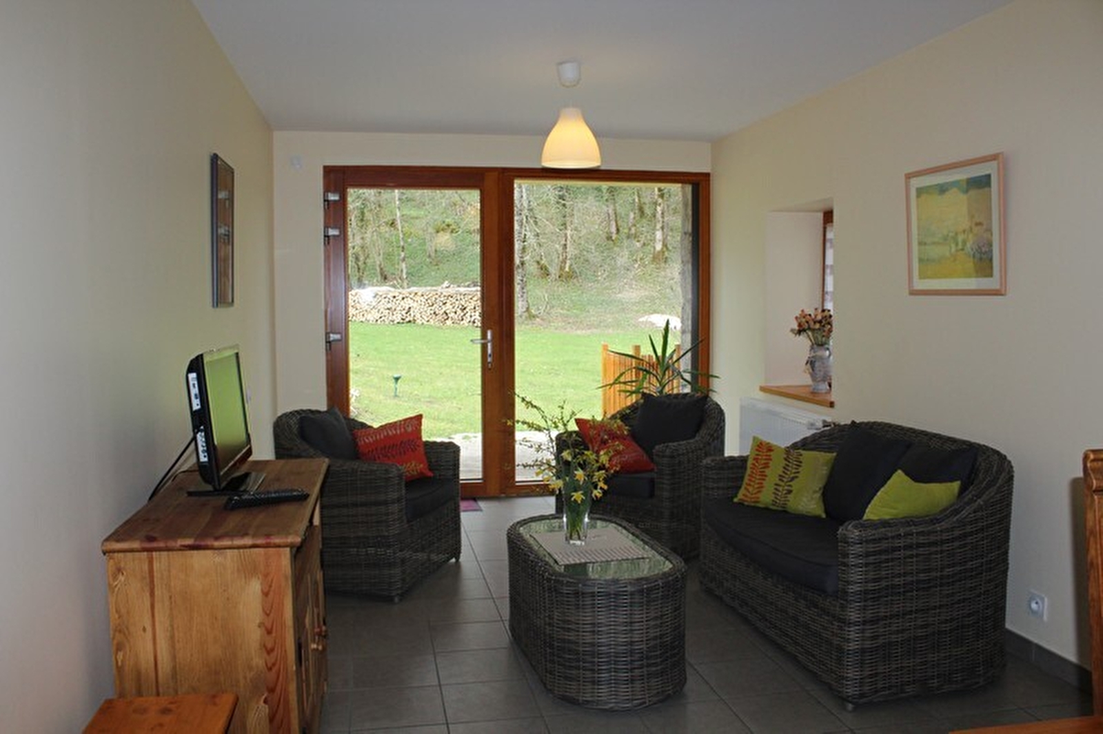 Dieses Ferienhaus, das an die Eigentümer angrenzt, liegt in der Nähe der 4 Seen und der Wasserfälle des Hérisson. Im Erdgeschoss: Eingangshalle, Waschmaschine, separates WC. Obergeschoss: Großes Wohnzimmer mit einer voll ausgestatteten Küche und 3 Entspannungsbereichen mit Sofas (davon ein Schlafsofa 140 cm), Flachbildfernseher, DVB-T, DVD-Player, Internetzugang, Badezimmer mit begehbarer Dusche und WC. Schlafzimmer 1: 1 Doppelbett 160x200cm, Schlafzimmer 2: 2 Einzelbetten. Terrasse mit Gartenmöbeln und Grill. Großes, angrenzendes, nicht eingezäuntes Grundstück. Bettwäsche wird gestellt. Babyausstattung steht zur Verfügung. Möglichkeit für 2 zusätzliche Personen (Kontakt mit dem Eigentümer).