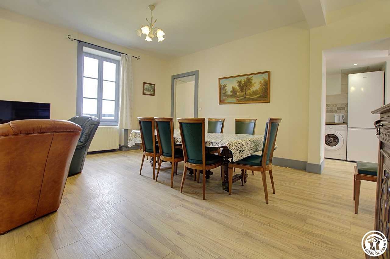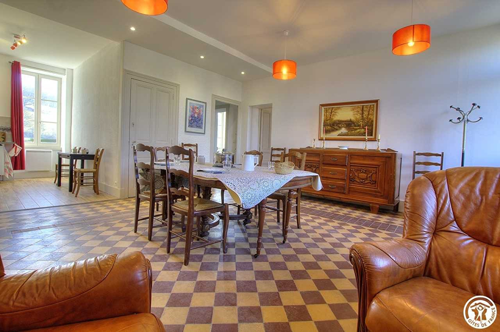 Auf den Anhöhen des Dorfes Saint Martin du Mont, dem Knotenpunkt des Bugey, der Dombes mit ihren 1000 Teichen und der Bresse mit ihrer Gastronomie, entdecken Sie diese Regionen und alle damit verbundenen Reichtümer. Testen Sie die zahlreichen Wanderwege, das Croix de la Dent und warum nicht La Bocquette, entlang der Schluchten des Suran, einer Natur, die Sie mit ihrem klaren Wasser verführen wird. Eine Vielzahl von Landschaften und Szenerien,. Ob mit der Familie oder mit Freunden, Sie haben die Wahl. Die renovierte Unterkunft, die sich neben der Kirche befindet, bietet Platz für 15 Personen. Lassen Sie sich vom Charme des Alten, das erhalten wurde, verführen: alte Fliesen, Holzparkett, schöner Treppenaufgang aus Holz, Türen..... Ein bisschen Modernität gefällig? Die 2 voll ausgestatteten und funktionellen Küchen erwarten Sie, um gute Mahlzeiten zuzubereiten. Die eingezäunten Außenbereiche (Hof und Garten) sind für einen geselligen Moment bei einem Grillabend oder einfach zum Ausruhen vorgesehen. Das Presbyterium besteht aus zwei aneinandergrenzenden Unterkünften, die sich im selben Gebäude befinden und auf drei Ebenen verteilt sind. Mit seinen 7 Zimmern, die alle mit Einzelbetten 90*190 (2 im Erdgeschoss) ausgestattet sind, bietet es insgesamt 15 Schlafplätze. 3 Badezimmer (1 im Erdgeschoss) und 3 separate WCs (1 im Erdgeschoss). Ideal für Familien- oder Freundestreffen. Reisen Sie mit leichtem Gepäck: Alles ist inbegriffen - die Betten sind bei der Ankunft gemacht, Handtücher und Nebenkosten sind inbegriffen. Parkmöglichkeiten gibt es im Hof.