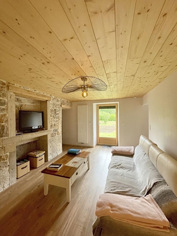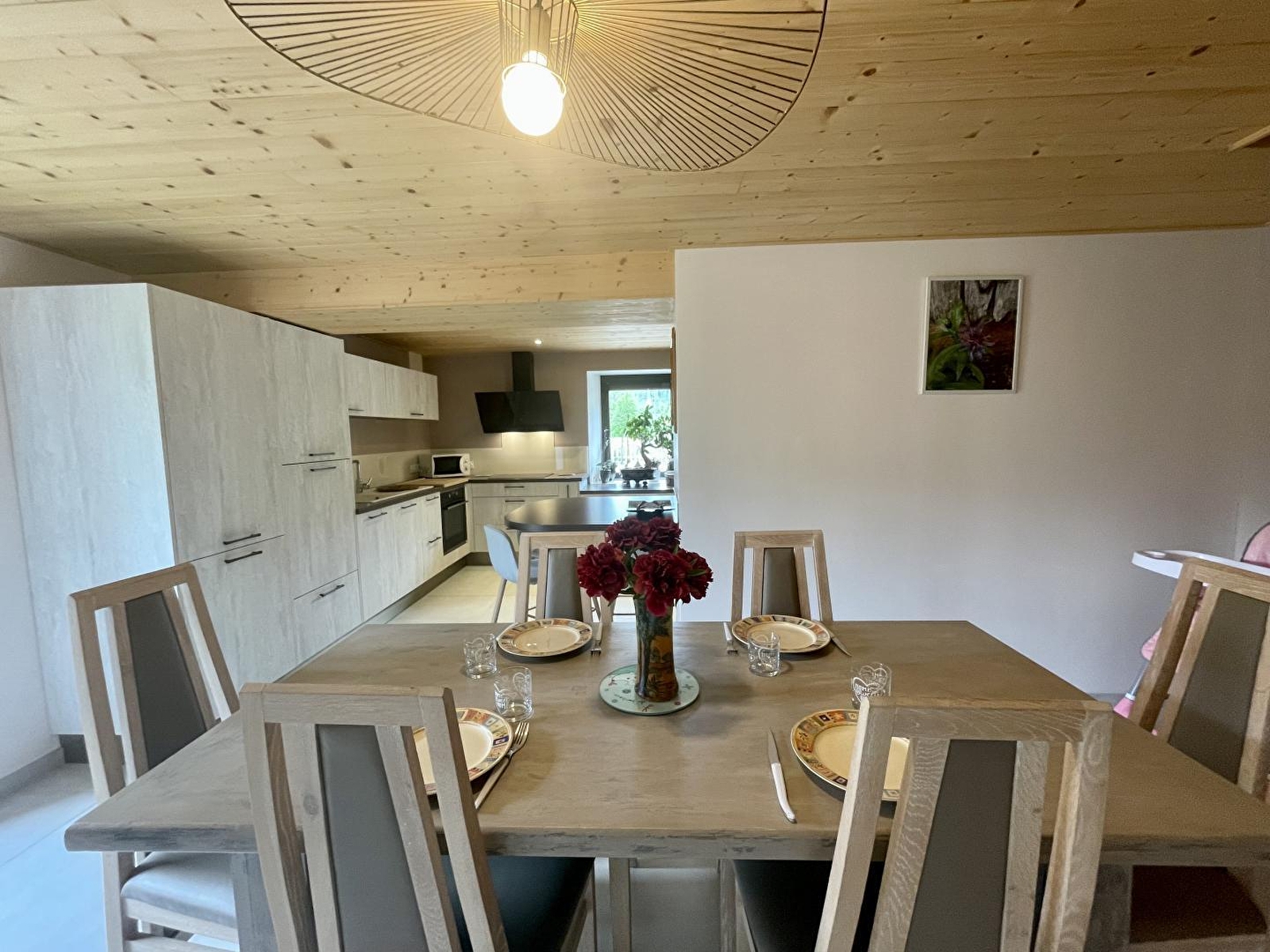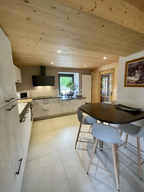 Diese Unterkunft wurde in einem renovierten Bauernhaus eingerichtet, das an die Wohnung der Eigentümerin angrenzt. Sie liegt im regionalen Naturpark Haut Jura. Im Erdgeschoss befindet sich ein Eingangsbereich mit Stauraum, ein großer Wohnraum mit einer voll ausgestatteten Küche, die sich zum Esszimmer hin öffnet, und Zugang zum Garten, das Wohnzimmer verfügt über zwei Sofas und einen Fernseher, eine Waschküche und ein separates WC. Im Obergeschoss befindet sich ein Mezzanin mit Bücherregal und einem Schlafsofa, das in eine Liegefläche von 140x190 umgewandelt werden kann. Ein Schlafzimmer mit einem Doppelbett 160*190 (Bettdecke 240*260), ein zweites Schlafzimmer mit einem Doppelbett 140*190 (Bettdecke 200*200) und 2 Einzelbetten 90*190 (Bettdecke 140*190). Dieses zweite Schlafzimmer, das Zugang zum Sanitärbereich bietet, wurde vom Flur durch 2 Klausen und blickdichte Vorhänge für mehr Privatsphäre getrennt (siehe Fotoalbum). Ein Sanitärbereich mit einem separaten WC, einem Badezimmer mit Dusche und Doppelwaschbecken. Außenbereich: Angrenzendes, nicht eingezäuntes Grundstück, von dem ein Teil für Sie reserviert ist, mit Gartenmöbeln und Grill. Zugang zum Abstellraum für Fahrräder, Kinderwagen oder andere Gegenstände. Aktivitäten : Schneesport : Alpinski (Les Rousses) oder Nordic Ski (Morbier, Chapelle des Bois), Familienstation Les Gentianes in 10 Minuten Entfernung, Sprungschanze Les Tuffes in 20 Minuten Entfernung. Im Sommer gibt es zahlreiche Wanderungen, um unsere Seen ( 10 Min. in der Region der Seen ) und Wasserfälle (Le Hérisson, la Langouette... ) zu entdecken. Anmerkung: Komplette Babyausstattung: Wickelkommode, Töpfchen, Badewanne, Sitzerhöhung, Hochstuhl, Regenschirmbett.