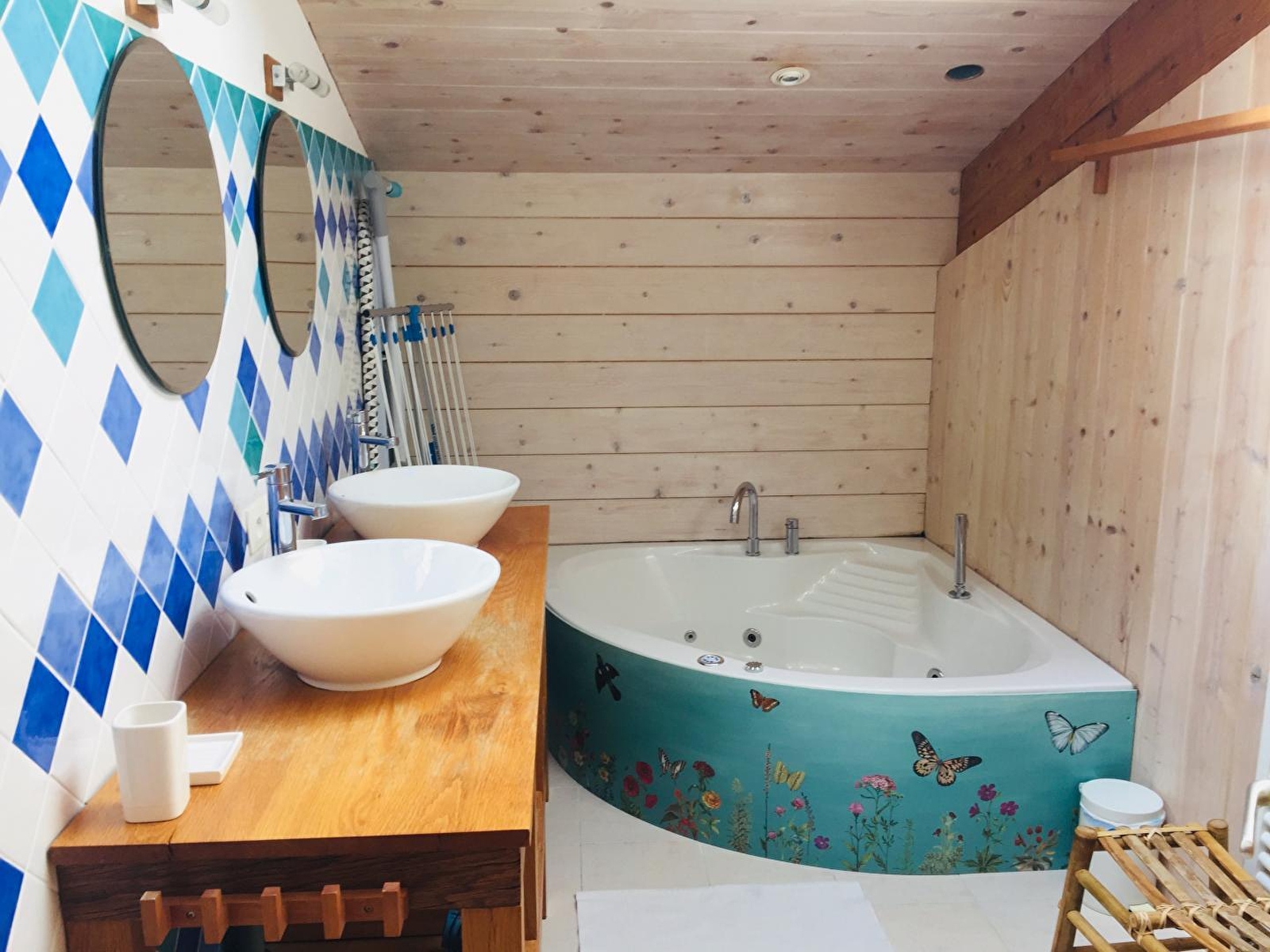 Schönes Reihenhaus in der Ebene, 20 Min. von St. Claude und 10 Min. von Lamoura entfernt, mit herrlichem Blick auf die Berglandschaft. Das Haus wurde mit gesunden Materialien renoviert und der Eigentümer nutzt erneuerbare Energien (Sonnenkollektoren, Regenwassernutzung, Pelletheizung...) Erdgeschoss: Entspannungsbereich, Einbauküche. Obergeschoss: Mezzanin mit 2 Einzelbetten, Badezimmer: Doppelwaschbecken und Whirlpool-Badewanne. Dusche, separates WC. CH1: 1 Doppelbett, CH2: 2 Einzelbetten. Großes angrenzendes, nicht eingezäuntes Grundstück, Gartenmöbel, Grill. Babybett und -stuhl auf Anfrage. Reinigungspauschale 50€.