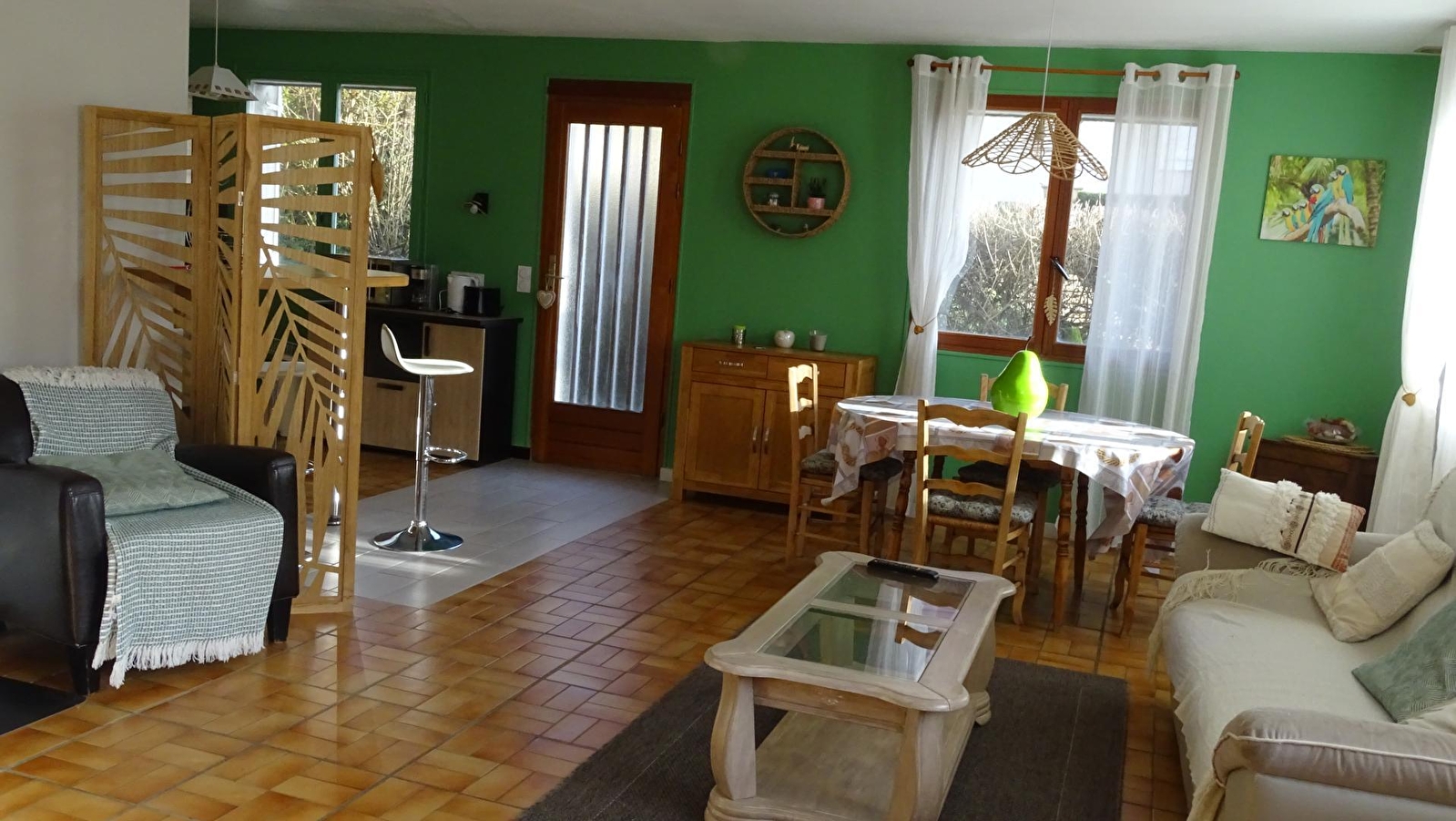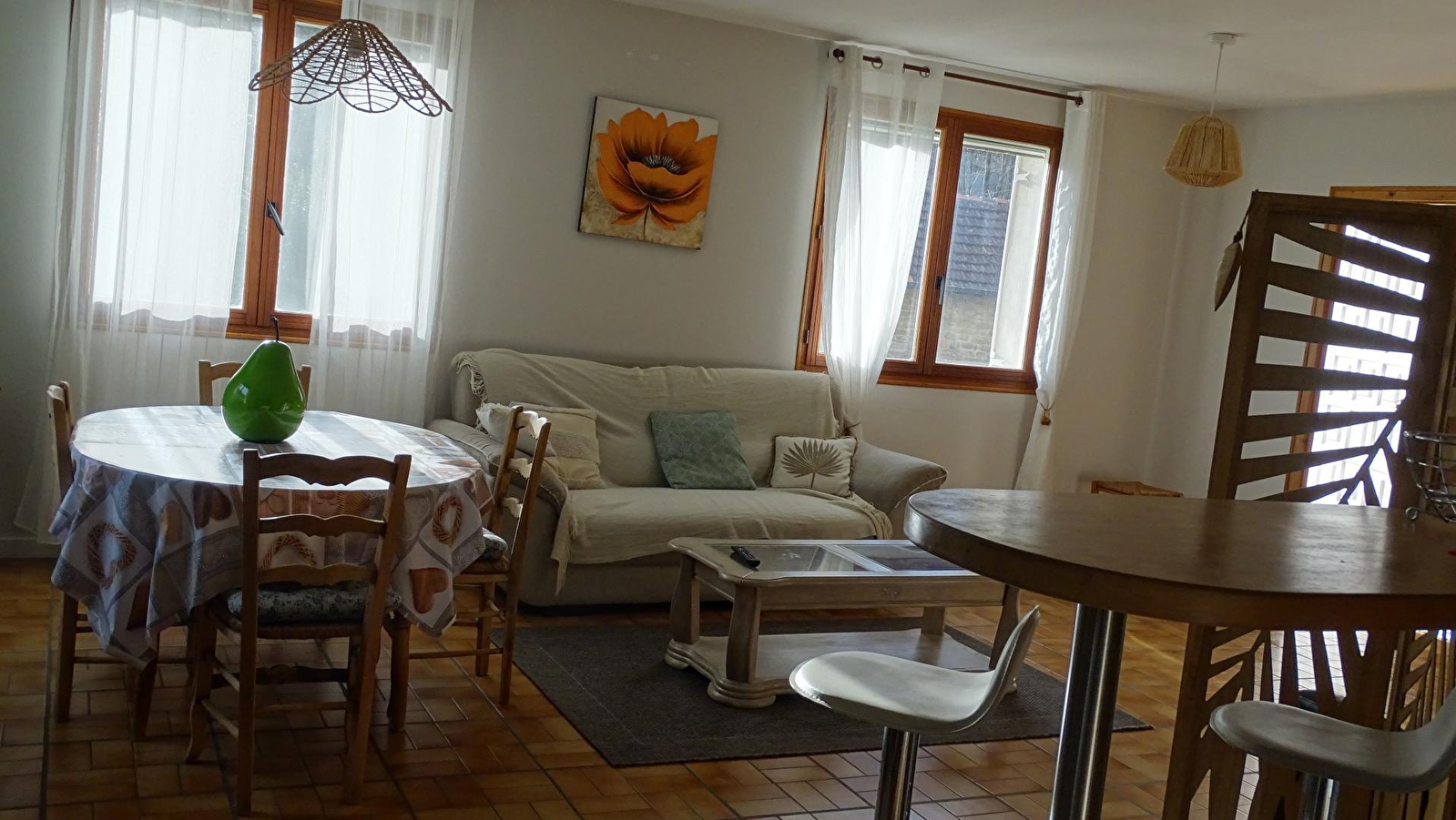Dieses ebenerdige Haus in einem charmanten Winzerdorf besteht aus einem Wohnraum mit ausgestatteter Küche, einem Wohnzimmer mit TV und Holzpelletofen, das einen direkten Zugang zur Terrasse bietet, einem Schlafzimmer mit zwei Ausziehbetten, einem zweiten Schlafzimmer mit einem 140 cm breiten Bett, einem Badezimmer mit Badewanne und einem separaten WC. Im Außenbereich können Sie die schönen Tage auf der Terrasse genießen, die mit Gartenmöbeln, einer Plancha und Liegestühlen ausgestattet ist. Sie befinden sich in idealer Lage, um die berühmten Dörfer Baume les Messieurs und Chateau-Chalon zu erkunden und in den umliegenden Weinkellern die Weine aus dem Jura zu probieren, natürlich in Maßen...