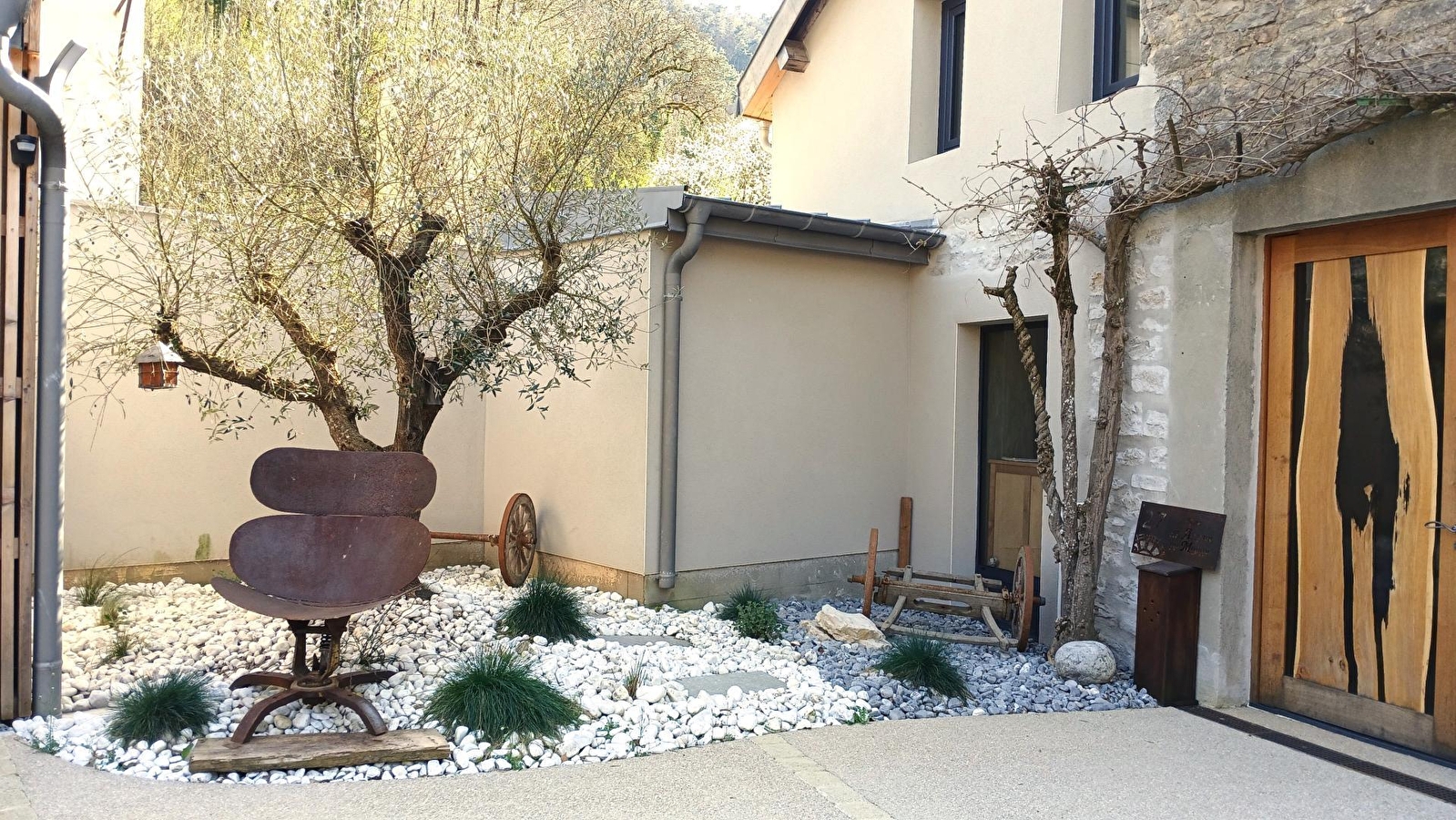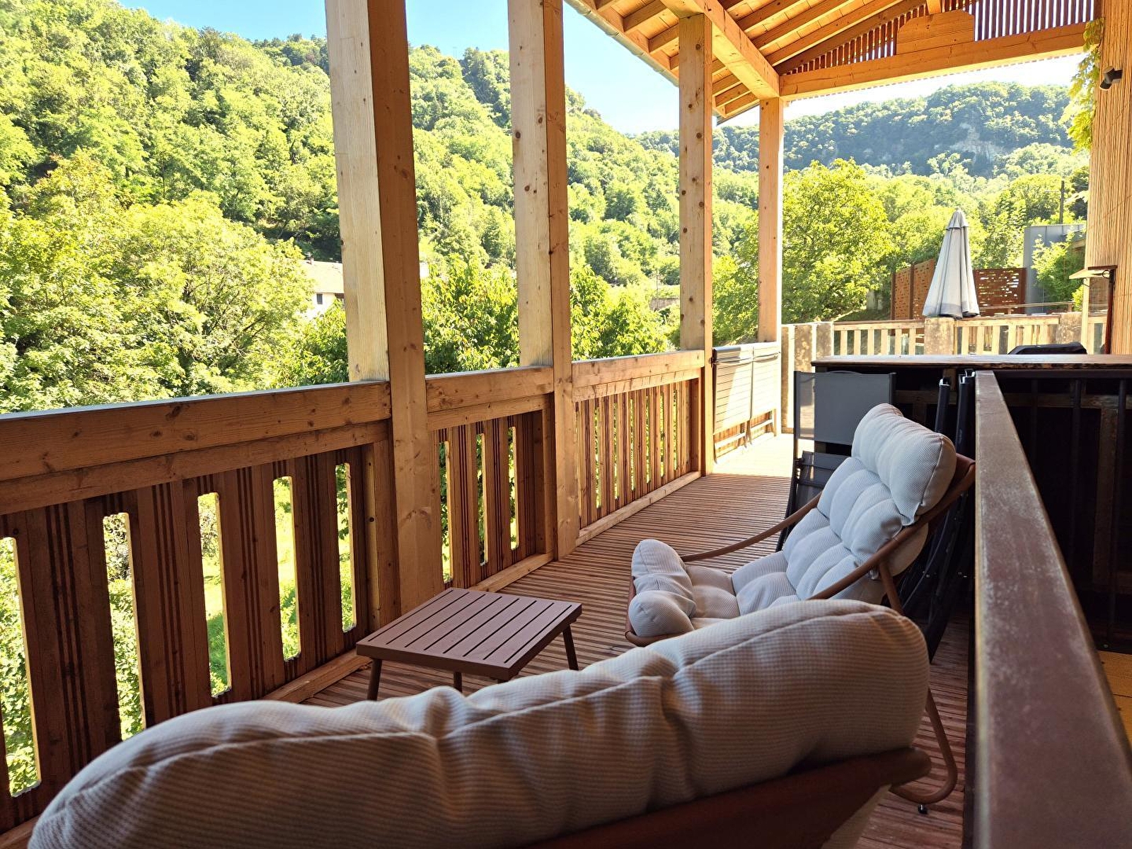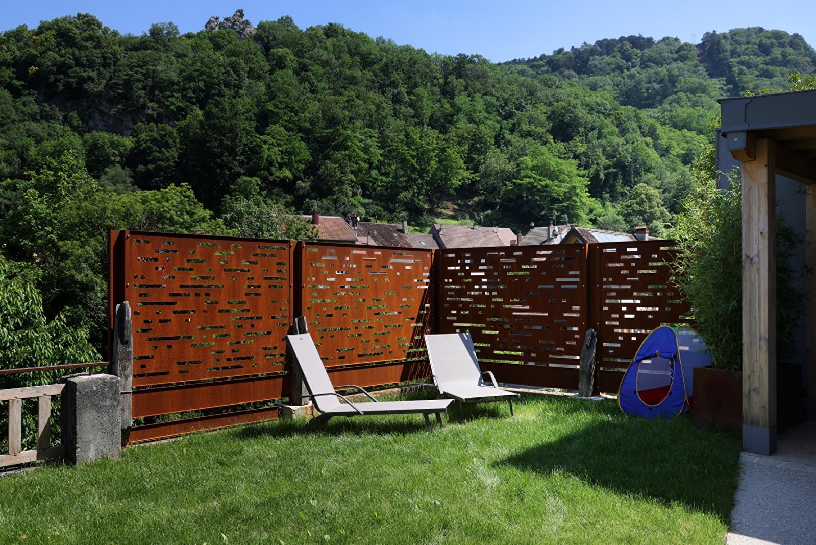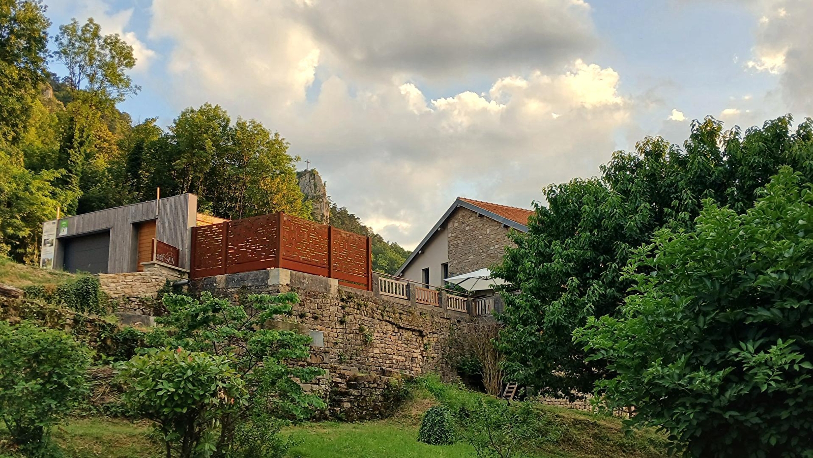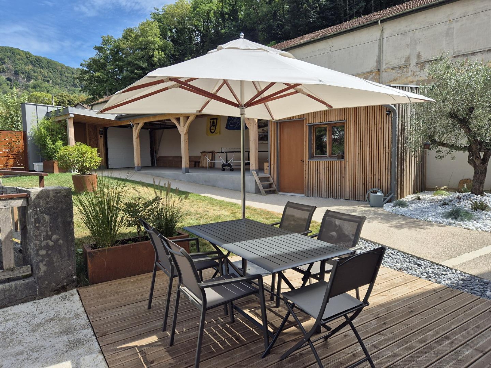 Am Fuße eines jurassischen Rückzugsgebiets, 300 m vom Ortszentrum entfernt, kommt die Natur in die Stadt. Das Anwesen begeistert mit seiner ländlichen Seite: Gärten, Obstgarten, Kanal und Fluss. Das Wasser ruht hier, singt oder fällt. Die Terrassen öffnen sich auf die umliegenden Küsten und Steilhänge. Die Stadt mit ihren vielfältigen Ressourcen und der nahegelegene Verkehr werden vergessen. Dieses Ferienhaus, das 2024 aus einer Tischlerwerkstatt auf einer sehr alten Mühle entstand, empfängt Sie komfortabel in einem gepflegten offenen Raum mit imposantem Volumen: 90m² und 8,5m unter dem Dachfirst sind Wohn-/Wohn-/Küchen-/Esszimmer mit Blick auf das Mühlrad im Untergeschoss. Dieses Rad kann nach Belieben zum Leben erweckt werden. Hinzu kommt ein 45m² großer Raum mit Küche, Wohnzimmer, Esszimmer, Spielen und Fernsehen. Das sind zwei perfekt ausgestattete Küchen. Seltener Vorteil: Eine Gruppe - Familien oder Freunde - kann in einem einzigen Mietobjekt Unabhängigkeit und gemeinsames Leben miteinander verbinden. Im Jura und an der frischen Luft können Sie Fondue, Raclette, Pierrade und Plancha genießen.