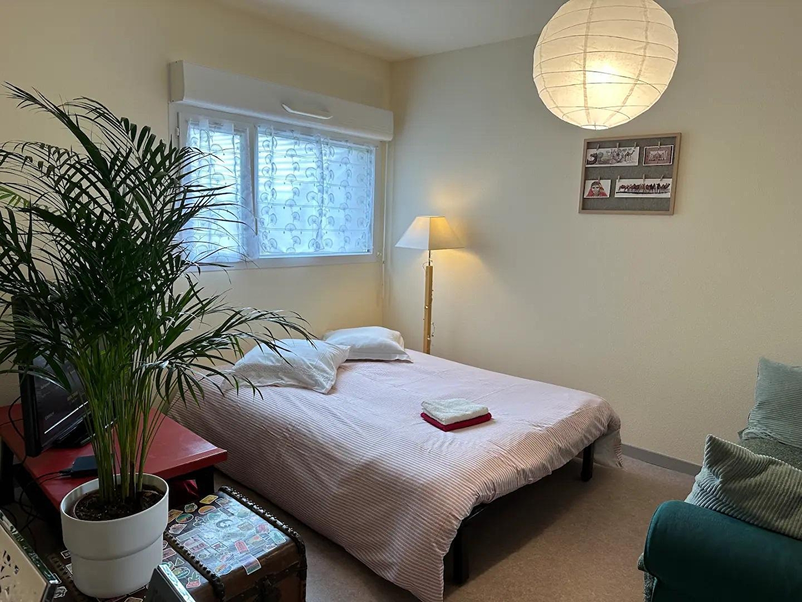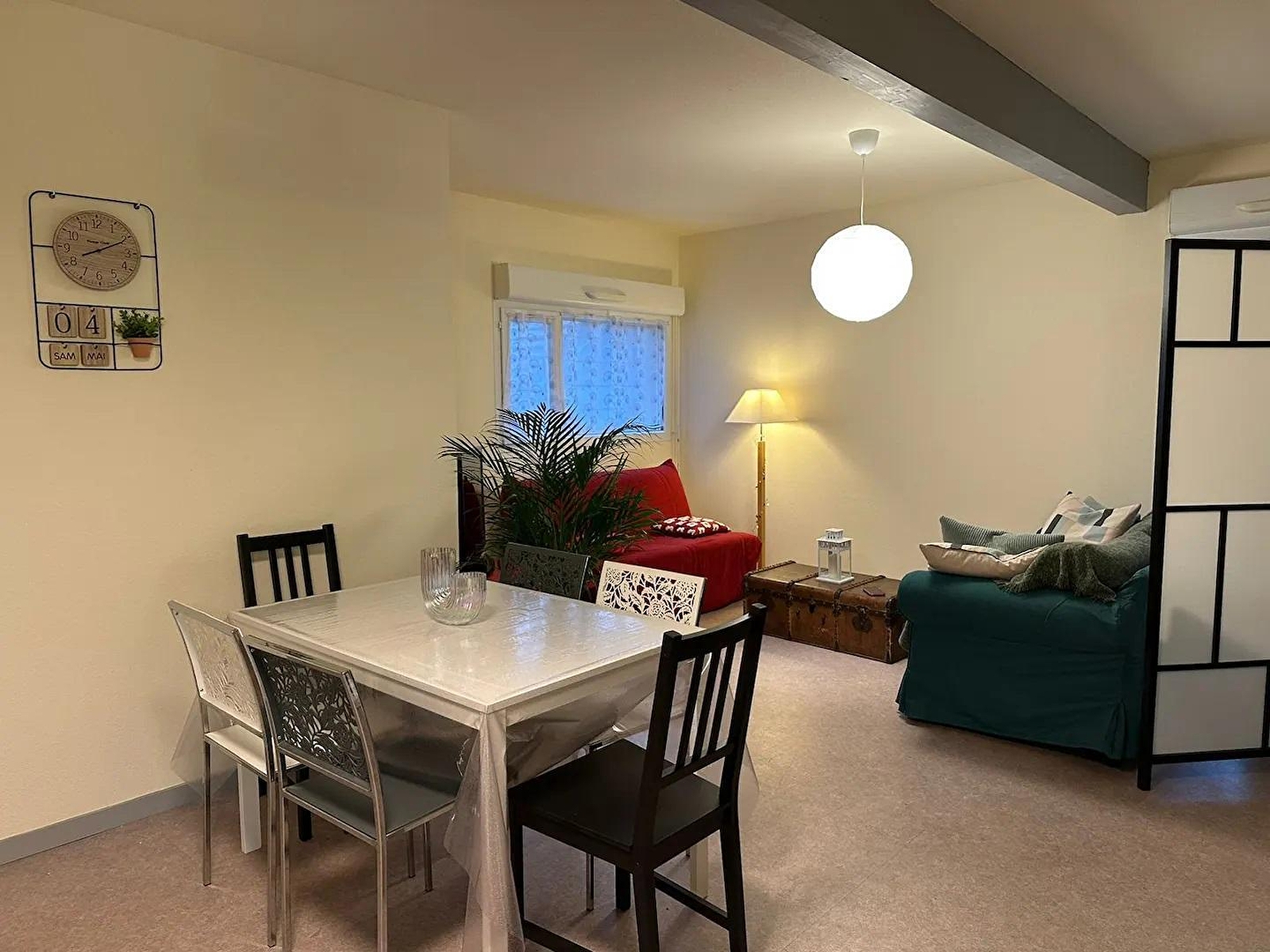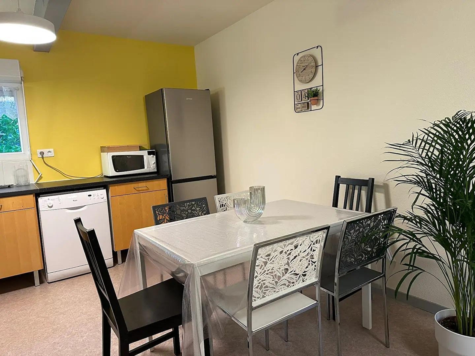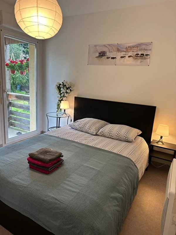 Diese Wohnung im 1. Stock eines Hauses besteht aus einem Wohnraum mit voll ausgestatteter Küche, einer Sitzecke mit 2 Schlafsofas und TV, einem Schlafzimmer mit 1 Doppelbett (140*190), einem Badezimmer mit Badewanne und einer separaten Toilette. Für Ihren Komfort sind die Betten bei Ihrer Ankunft bezogen, die Handtücher werden gestellt und die Reinigung ist im Preis inbegriffen. Im Außenbereich können Sie einen großen Balkon mit Gartenmöbeln und einen kleinen Gartenbereich (nicht angrenzend) mit Liegestühlen und Grill nutzen. Ideale Lage, 600 m von einem 1,5 ha großen, vollständig schattigen Gemeindepark entfernt, in dem Sie einen Kinderspielplatz, einen City Park, einen Pump Track, einen Bouleplatz und ein Vereinscafé finden. Zahlreiche Spaziergänge zu Fuß oder mit dem Fahrrad sind möglich.Das Ferienhaus befindet sich in der Nähe des grünen Weges, über den Sie die Fahrradstrecken von Louhans und Lons le Saunier erreichen können. Die Thermalstadt Lons le Saunier liegt 3 km entfernt und ist mit dem Fahrrad erreichbar. Auf Anfrage und gegen Aufpreis können Mahlzeiten von der Eigentümerin zubereitet werden.