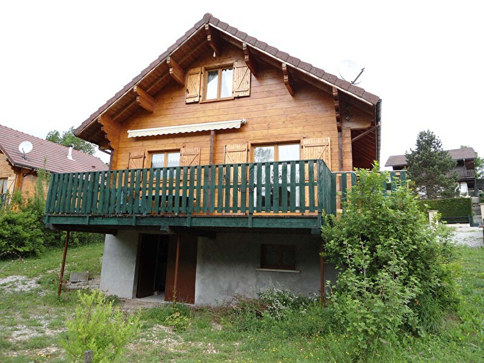 Dans un village situé à toute proximité des plages du domaine de Chalain (lac naturel aménagé)avec base de loisirs,tous les commerces de proximité sur place. Dans un ensemble de chalets (4 chalets identiques sur la même parcelle): un chalet (les edelweiss) comprenant en RDC: pièce de jour et détente avec coin cuisine aménagé à l'américaine, salon avec canapé, salle d'eau, wc, une chambre avec 1 lit 2 personnes. A l'étage: une mezzanine avec 1 lit 2 personnes et 1 chambre avec 2 lits 1 personne. Micro-ondes,télévision,téléphone à carte(mobicarte). Parking privé, terrasse privative (exposée sud). Local à vélo privé et fermé.