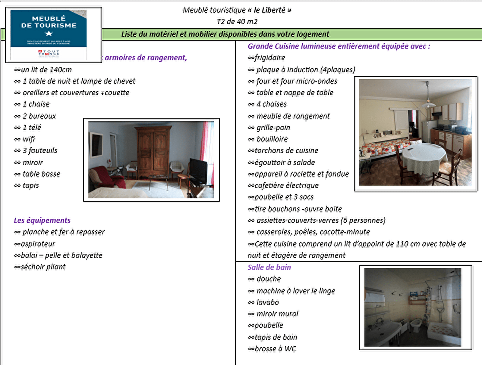 Die Wohnung ist 40 m2 groß und besteht aus einem Wohn- und Schlafzimmer mit einem 140 cm breiten Bett und einer Küche mit einem 90 cm breiten Bett und ist ideal für 3 Personen. Die Küche ist funktional und sehr komplett.