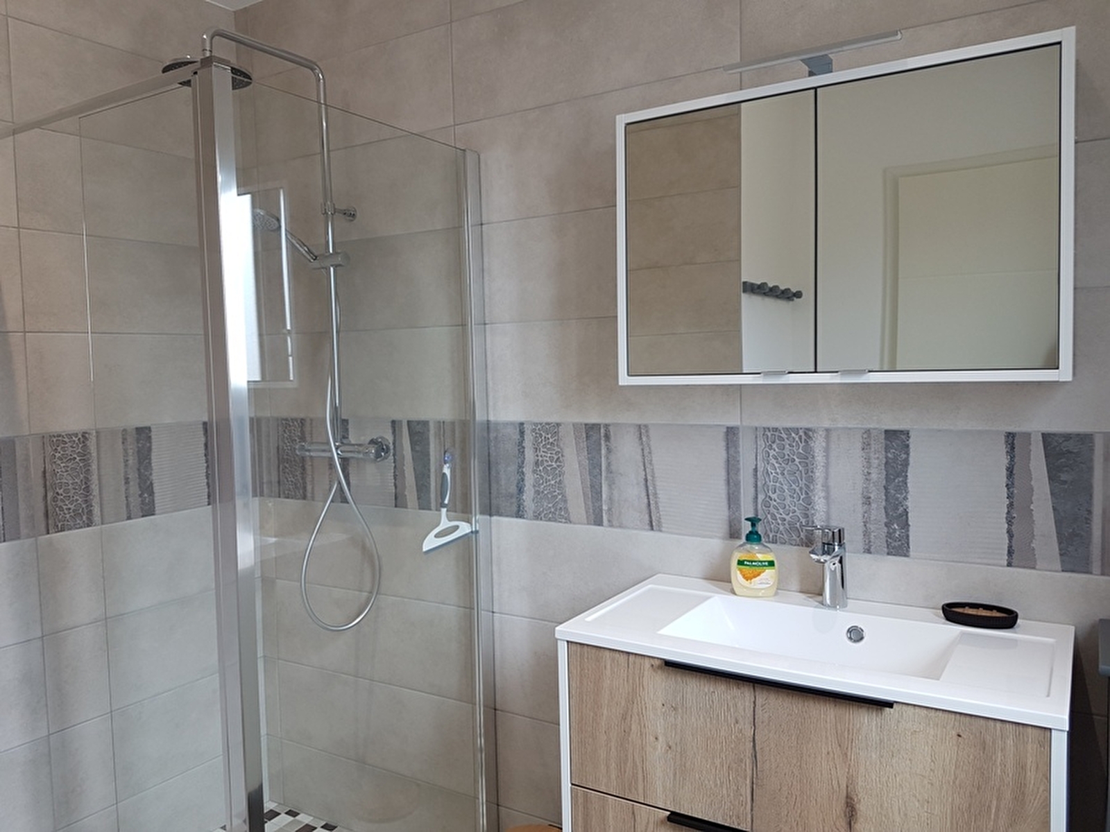 Dieses neue Haus in Holzrahmenbauweise liegt ruhig in einer Sackgasse und besteht im Erdgeschoss aus einem Wohnraum mit integrierter, voll ausgestatteter Küche, einem Wohnzimmer mit Fernseher, einem Badezimmer mit begehbarer Dusche, einer Waschküche und einer separaten Toilette. Im Obergeschoss befinden sich 3 Schlafzimmer, 2 mit einem 140 cm breiten Bett, 1 mit 2 Einzelbetten und ein Ankleidebereich. Im Außenbereich können Sie eine möblierte Terrasse mit Gartenmöbeln, Grill und Liegestühlen nutzen. Für Ihren Komfort werden die Betten bei Ihrer Ankunft gemacht. Ein Raum steht Ihnen zur Verfügung, um Material (Skier, Fahrräder oder anderes) zu lagern. Anmerkung: Fußbodenheizung mit niedriger Temperatur Zu Ihrer Verfügung steht eine Sauna, siehe direkt mit den Eigentümern vor Ort.