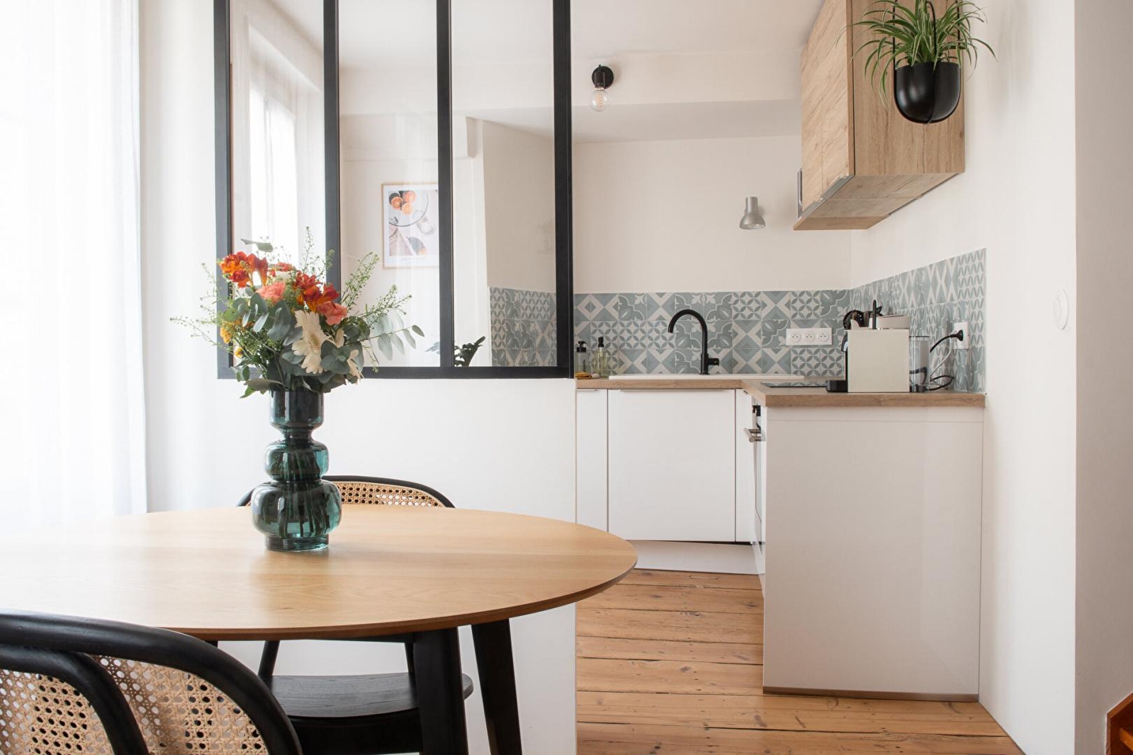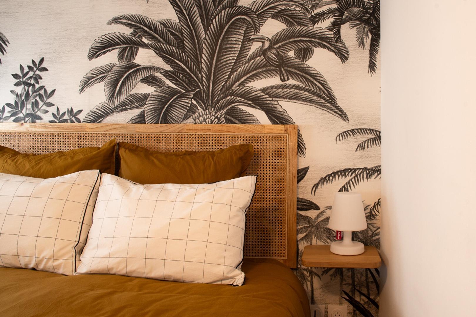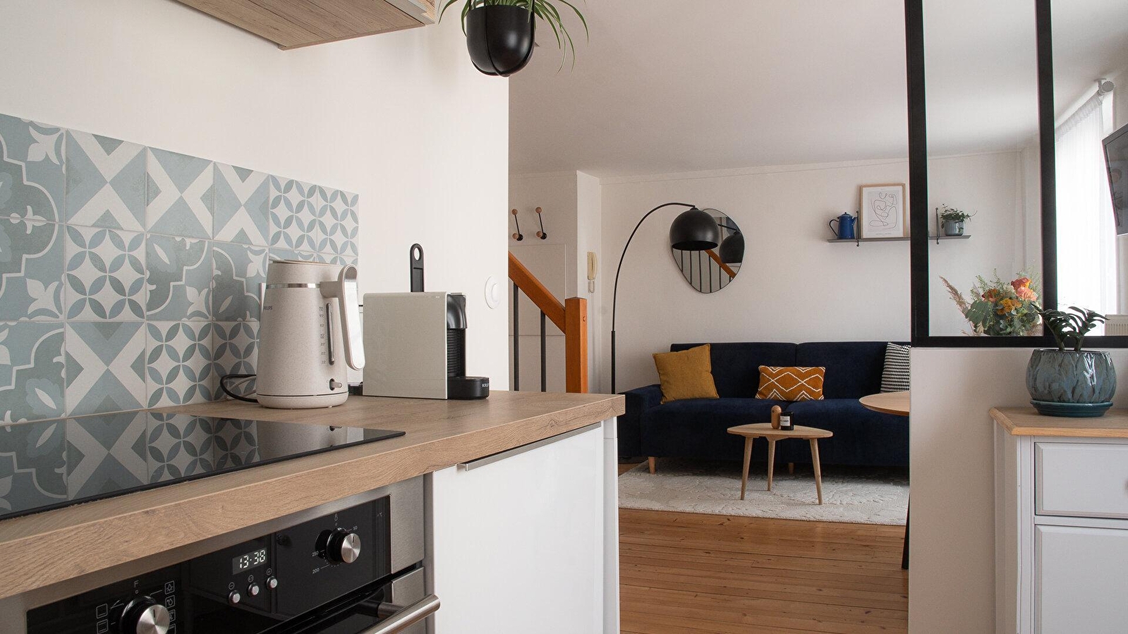 Sie besteht aus einem Wohnraum mit voll ausgestatteter Küche und einem Wohnzimmer mit Sofa und Fernseher. Im Obergeschoss befinden sich das Badezimmer mit WC und das Schlafzimmer mit einem Doppelbett (160x200). Für Ihren Komfort wird das Bett bei Ihrer Ankunft gemacht und die Handtücher werden bereitgestellt.