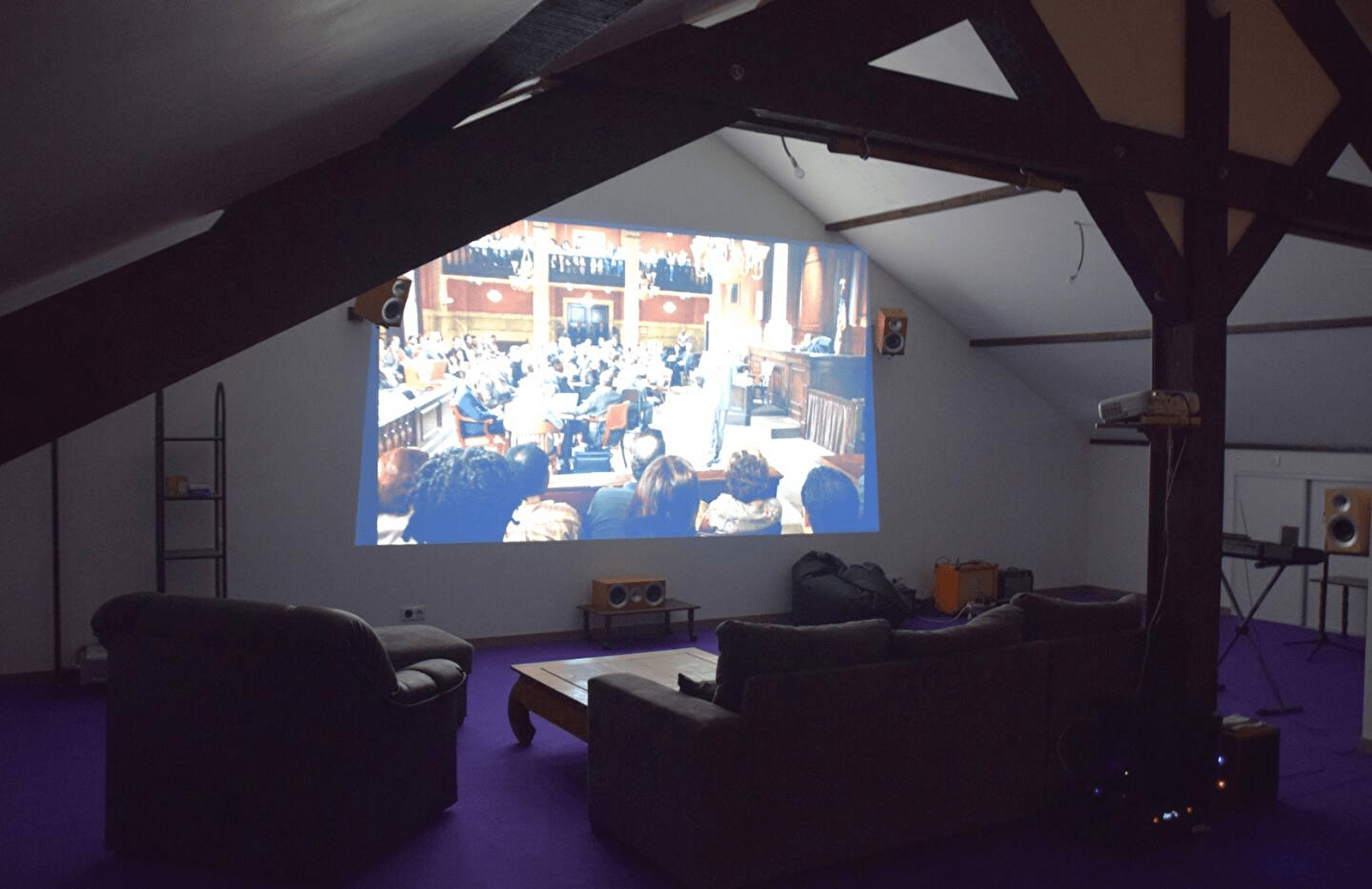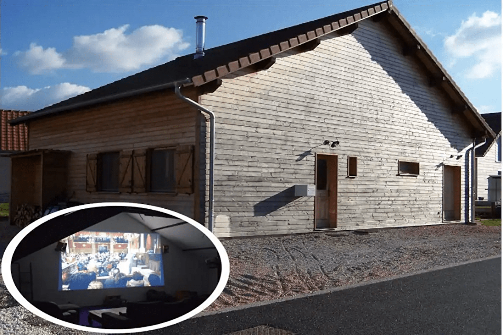 Holzhaus mit Kinosaal auf dem Land