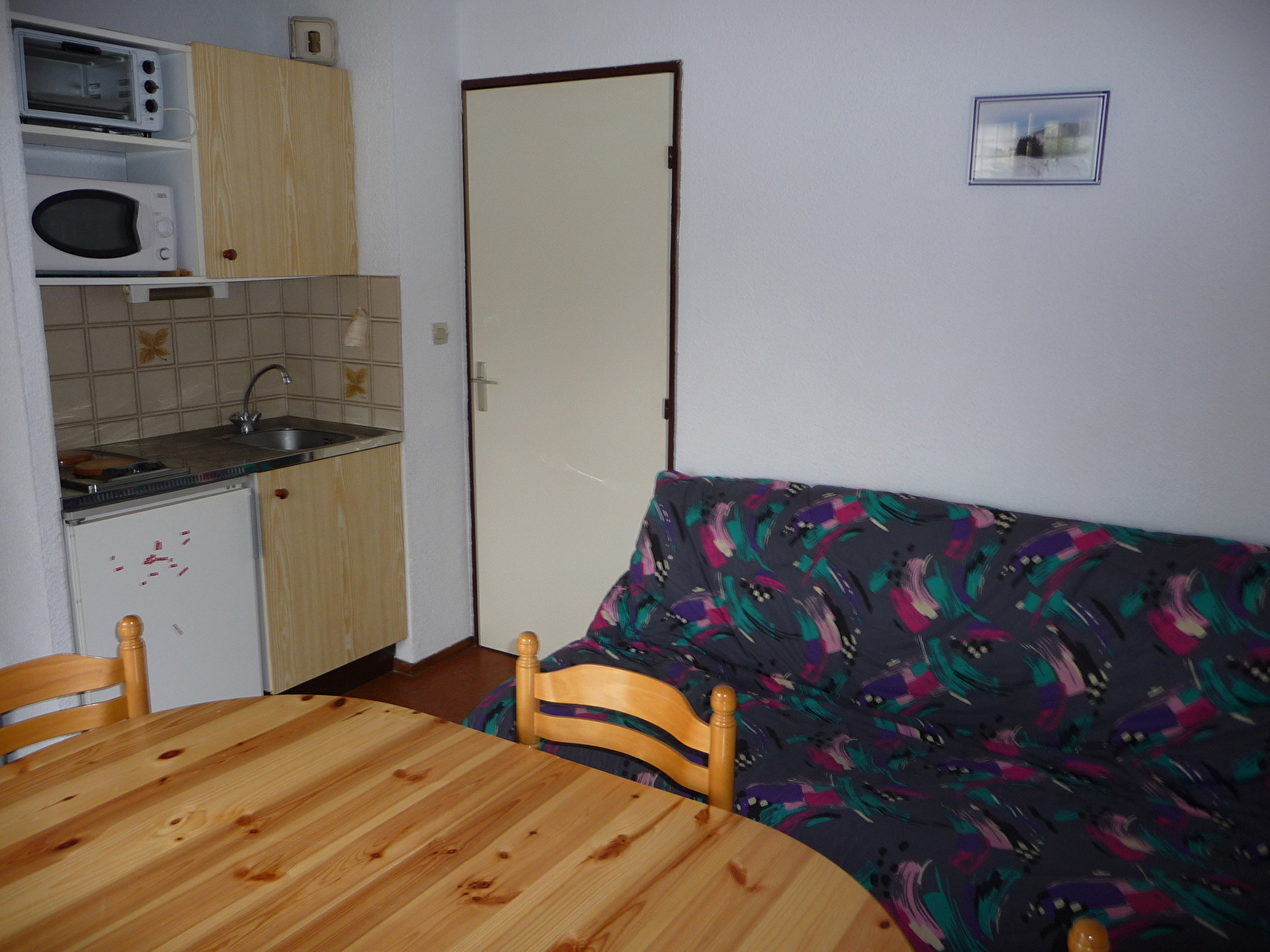 Hübsches, helles Studio mit Kabine im 1. Stock mit Balkon. 300m vom Dorf und den Geschäften, 200m vom Sessellift Val Mijoux (Rückfahrt mit Skiern an den Füßen) und den Wanderwegen entfernt. Südlage.