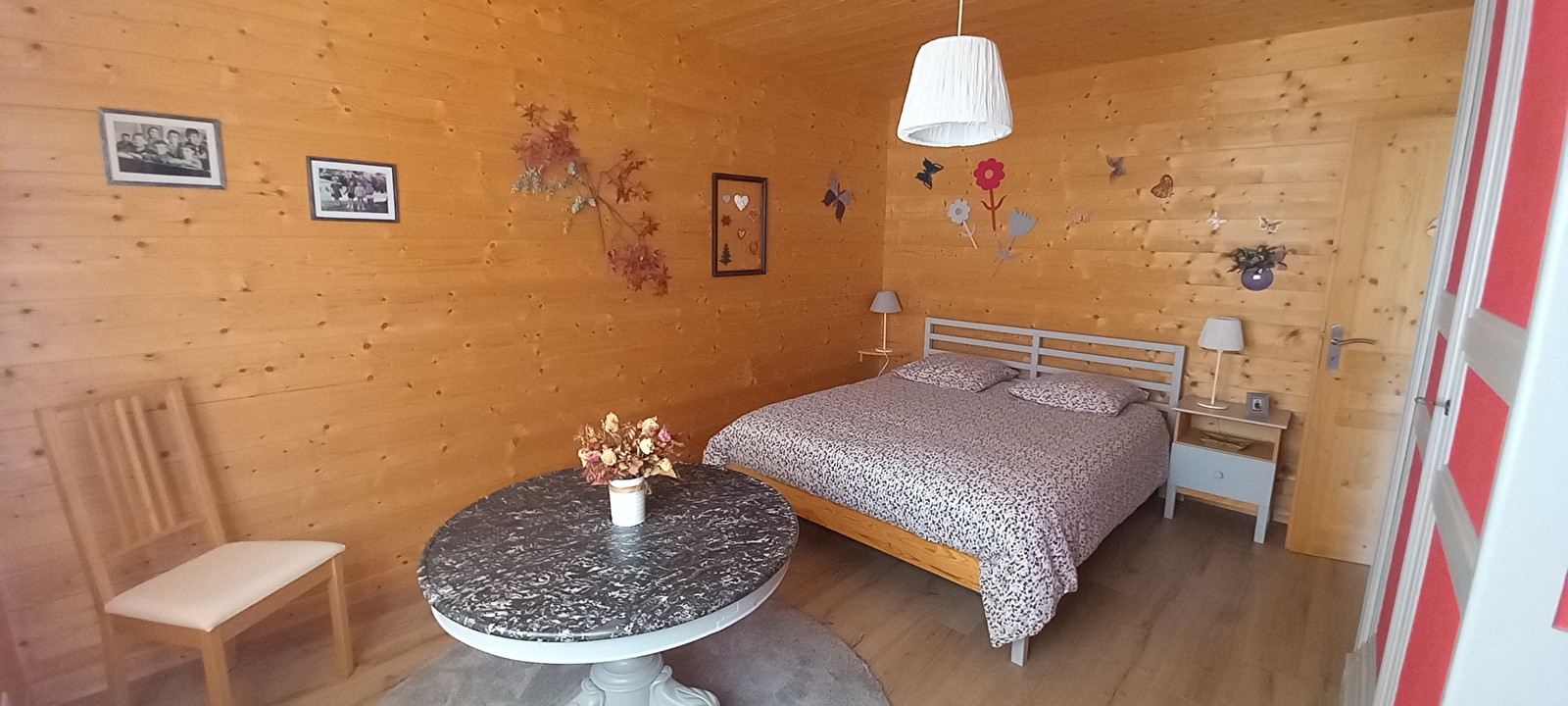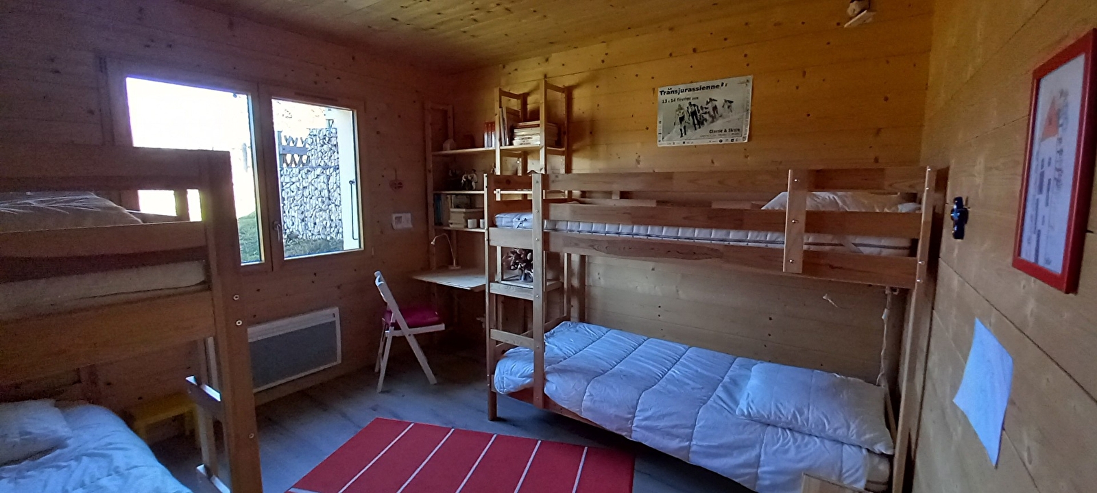 Entdecken Sie dieses wunderschöne, freistehende und helle Chalet. Um zum Chalet zu gelangen, müssen 42 Stufen erklommen werden, diese schöne Unterkunft muss man sich verdienen! Im Erdgeschoss befindet sich der Eingangsbereich mit Erker, wo Sie alles Notwendige finden, um Jacken und Schuhe abzulegen. Dieser Raum dient auch als Flur, um zu den Schlafzimmern und dem Badezimmer zu gelangen. Das erste Schlafzimmer ist mit einem 160*200 cm breiten Bett ausgestattet. Das zweite verfügt über 2 Etagenbetten (4 x 90) mit einem Schreibtisch und einem Bücherregal. Das Badezimmer ist mit einer großen Dusche und einer Waschmaschine ausgestattet und verfügt über ein separates WC. Im ersten Stock befindet sich ein sehr großes Wohnzimmer mit voll ausgestatteter Küche, Essbereich und Sitzecke mit Sofa und Fernseher. Vom Wohnzimmer aus haben Sie Zugang zu einem 30 m² großen Balkon, von dem aus Sie den atemberaubenden Panoramablick genießen können. Der Garten grenzt an den Balkon, ist teilweise eingezäunt und verfügt über Gartenmöbel und einen Grill. Im zweiten Stock befindet sich ein Zwischengeschoss mit 2 Betten von 80 cm Breite (die zu einem Bett von 160 cm Breite gemacht werden können) und einer Bücherecke (Bücher und Gesellschaftsspiele). Ideal gelegen: Skilanglauf hinter dem Haus, die gespurten Loipen sind weniger als 800 m entfernt, 100 m von der Grande Traversée du Jura, 400 m: Aktivitäten mit Schlittenhunden, gegenüber dem Chalet: Rodelhänge. In 3 km Entfernung können Sie das Dorf Lajoux erkunden, in dem sich der Naturpark Haut-Jura befindet, mit einem Raum für Besichtigungen, einer Obstplantage, einem Postamt und einem Geschäft für Skiausrüstung (Verkauf und Verleih). Im 5 km entfernten Lamoura (touristisches Dorf) finden Sie Restaurants, das Fremdenverkehrsamt, das Museum für Steinmetzkunst und den See von Lamoura. 6 km entfernt, im Zentrum von Septmoncel, gibt es einen Bäcker und ein Lebensmittelgeschäft. Stromkosten: 340 kwh im Winter und 170 kwh im Sommer - Überschreitung zuzüglich, vor Ort zu zahlen.