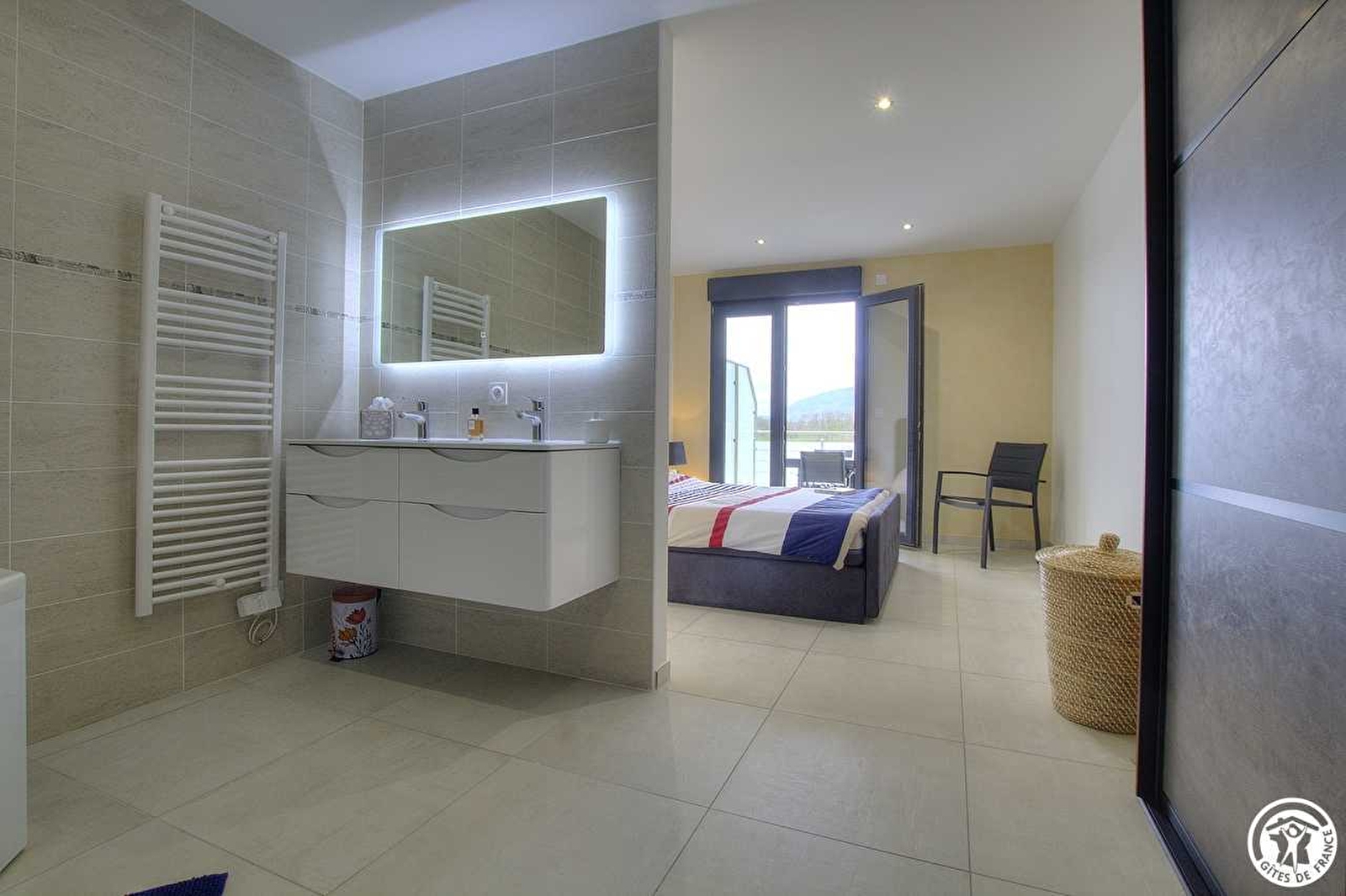 In einer geschützten Umgebung von 62 Hektar, die dem Wohlbefinden der Pferde gewidmet ist, wird dieses Ferienhaus Ihr idealer Fuß in der Tür sein, um das Pays de Gex und die Schweiz zu durchqueren. Vom Eingang des Familienguts an ist alles so konzipiert, dass jeder seinen Platz findet. Unter den für die Pferde reservierten Bereichen werden Sie Ihren eigenen haben! Lassen Sie sich von den Besitzern des Ortes führen und entdecken Sie Ihre zukünftige Ferienunterkunft. Aber halten Sie zunächst oben an der Treppe an, die auf die Terrasse mit der Ausstattung für Ihre zukünftigen Mahlzeiten im Freien führt. Sehen Sie die Felder und die Berge des Haut-Jura? Skistation 4 km entfernt für die Liebhaber des Skifahrens oder schöne Spaziergänge in Aussicht für die weniger Sportlichen. Vor Ort besteht die Möglichkeit, einen Ausritt mit Reitlehrerin zu unternehmen (auf Anfrage). Los, es ist Zeit, sich vorzustellen! Beugen Sie sich ein wenig vor und Sie können den vierbeinigen Mietern unter Ihnen "Hallo" sagen. Vielleicht bekommen Sie zur Begrüßung auch einen kleinen Hufschlag auf den Boden ...