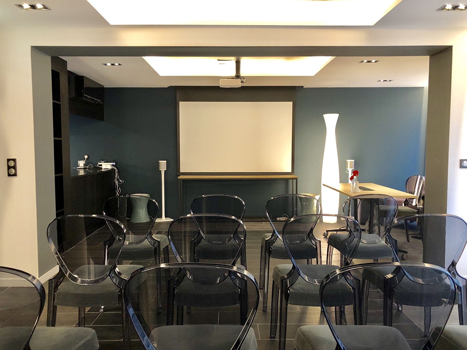 Wir stellen Ihnen einen 45 m² großen Saal (mit 15 m² Terrasse) für 40 Personen zur Verfügung.