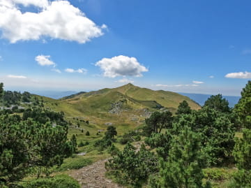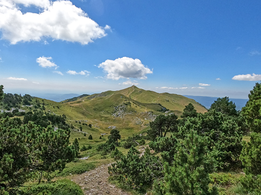 Eine Kette von Pässen und Gipfeln, die von sanft abfallenden Tälern, schroffen Felswänden und Hochebenen unterbrochen wird, mit Blumenwiesen und Wäldern bedeckt ist und von Seen, Bächen und Wasserfällen durchzogen wird.