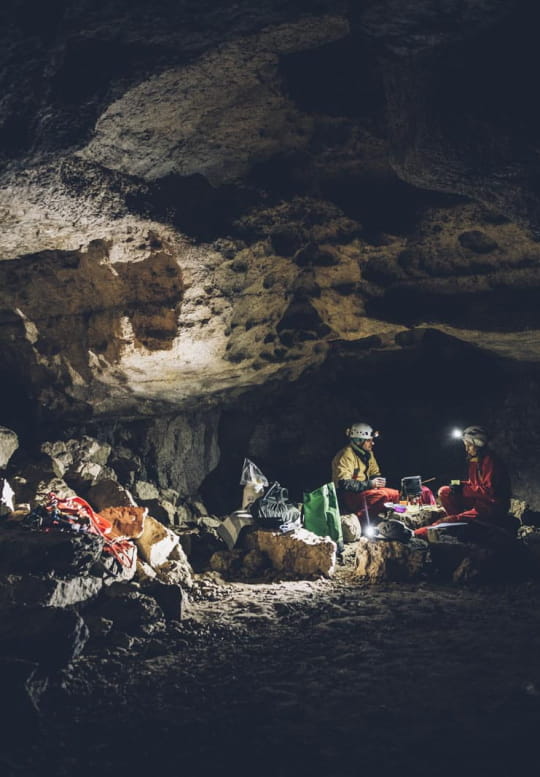 Es ist also ein Abenteuer, das unbedingt von Profis begleitet werden muss. Allein die Ausrüstung erfordert den Einsatz von Experten. Helm, Stirnlampe, Klettergurt, Schutzanzug, aber auch Seile, Abseilgeräte und Ausstattung für den Aufstieg.
