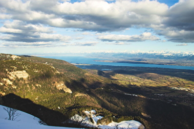 Nach der Kontemplation kommt die Aktion! Erkunde zu Fuß oder mit Schneeschuhen die Haute Chaîne du Jura, ein nationales Naturschutzgebiet, das die höchsten Gipfel des Juramassivs umfasst. Somit erwartet dich nach 30 Minuten wandern der Grand Mont Rond (1.473 m). Die Mutigsten können auch noch bis zum Colomby de Gex auf 1.688 m Höhe vorstoßen.