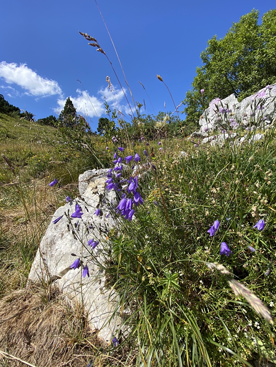 Auf dem Gipfel des Crêt de la Neige lassen sich auch zahlreiche Bergblumen wie die Trollblume, Skabiosen und auch Enziane beobachten.