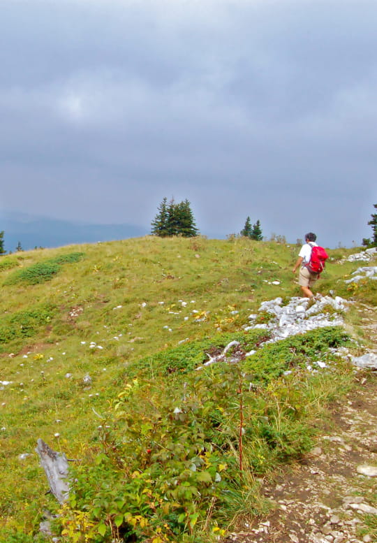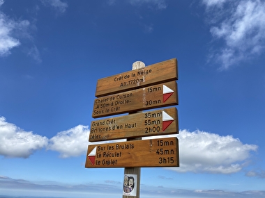 Für eine sportlichere Version muss man von Lélex aus auf dem ersten Teil der Wanderung den GR9 nehmen, dann den GR Balcon du Léman, bevor man der Kammlinie bis zum Crêt de la Neige folgt!