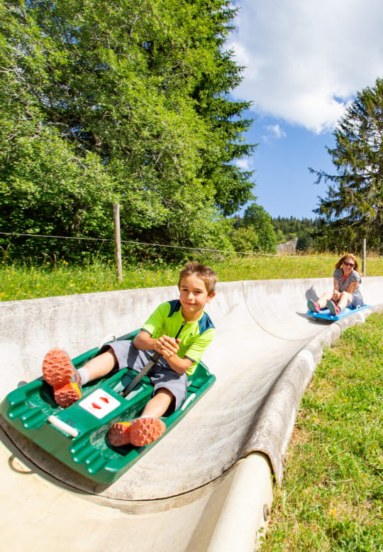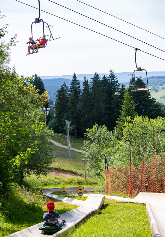 Rodeln... im Sommer – im Juragebirge ist das möglich! In den Ferienorten Métabief und Monts Jura kannst du beim Hinuntersausen der Pisten jede Menge Nervenkitzel erleben. Die weniger Wagemutigen können auch gemütlich hinunterfahren und sich die Zeit nehmen, die Landschaft zu bewundern, die sich ihnen bietet.